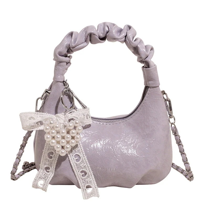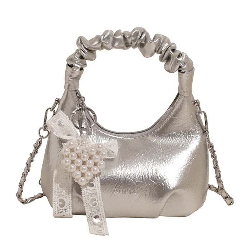 韓国風プリーツたまご型ハンドバッグ クリームイエロー ショルダーチェーン斜めがけ トートバッグ