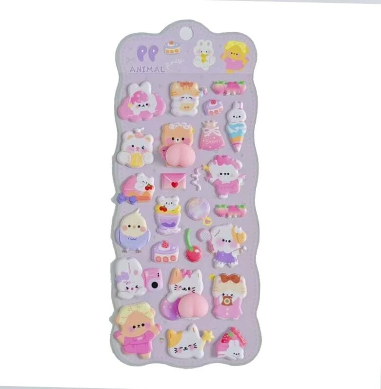 触りたくなる 重複なし おしり ぷにぷにシール ぷくぷく 3D 立体 ステッカー キャラクター風 マシュマロ感 スクイーズ風 シール帳 デコレーション