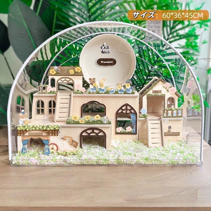 60cm透明アクリルハムスターケージ 無垢材仕様 大型ワイド設計 ゴールデン対応 かじり防止モデル