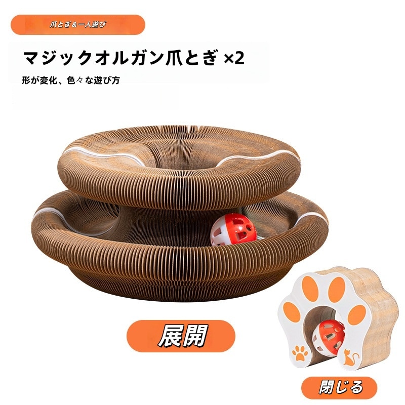 猫用折りたたみダンボール爪とぎ おもちゃ付き 高密度ハニカム構造 耐久設計 ストレス解消タイプ