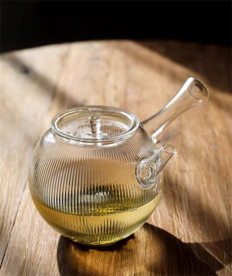 激安セール 大容量でサイドハンドル付きガラス製お茶煮出し器 高温に強い湯沸かしポット 茶こし付きお茶淹れ器 茶器アクセサリーとして 煮出し 淹れ 分注が一体で 家庭で日常的に使えます