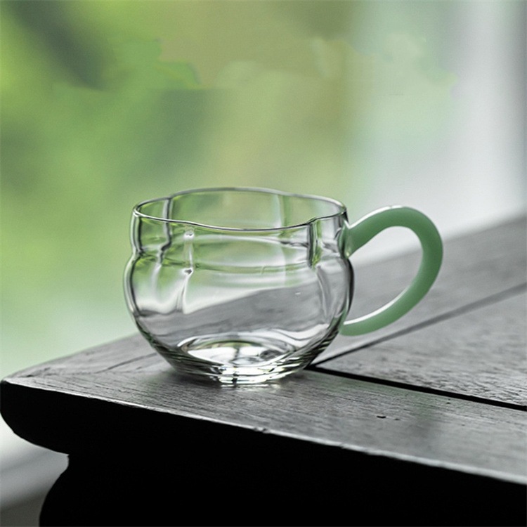 INSスタイル クリア素材の耐熱ガラスカップ 取っ手付きデザインで持ちやすい 5色展開のティーカップ 緑茶やフラワーティー用に設計された 160mlサイズ 個人で使いやすいグラス