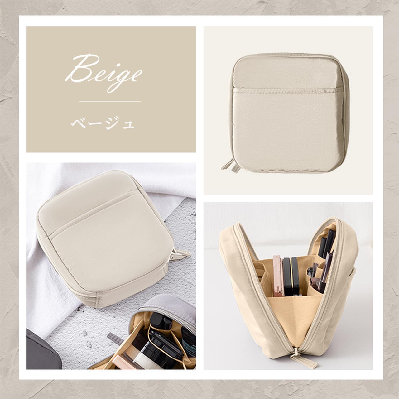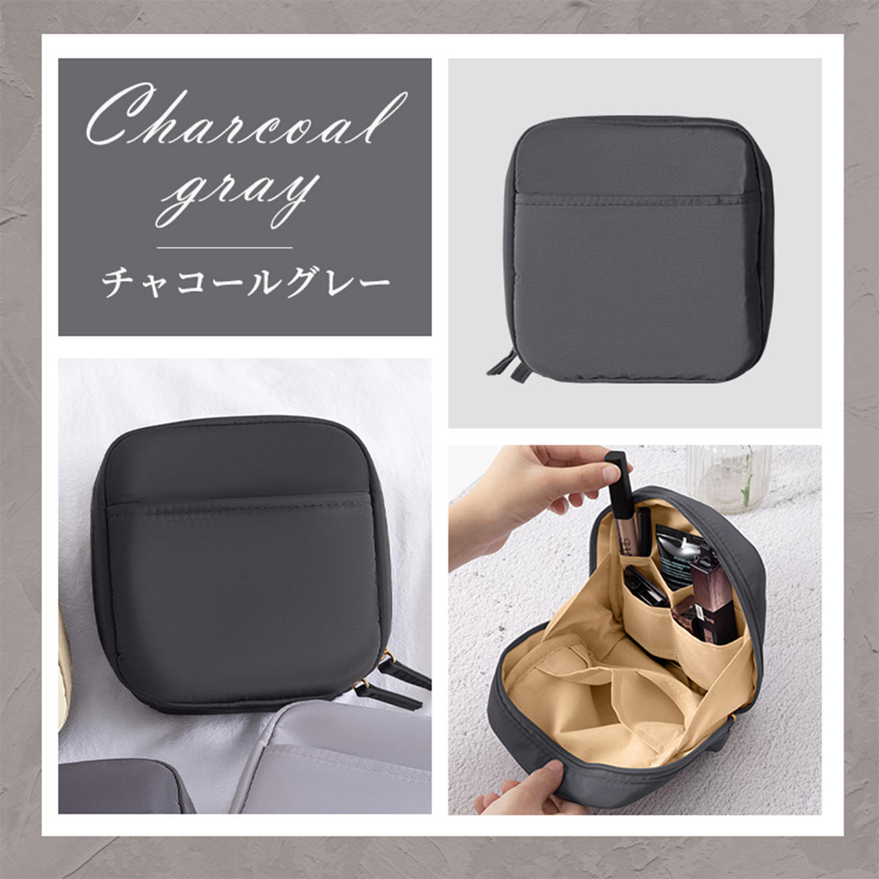 化粧ポーチ メイクポーチ 小物入れ タテ型自立 立てて収納 大きめ 縦型 仕分け トラベルポーチ コンパクト スクエア マチあり 便利 大容量 旅行 便利
