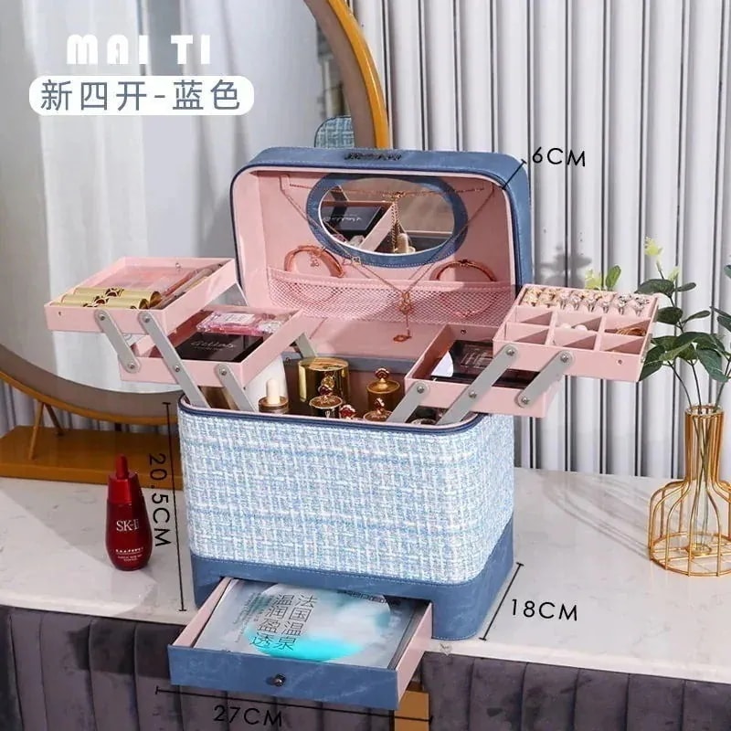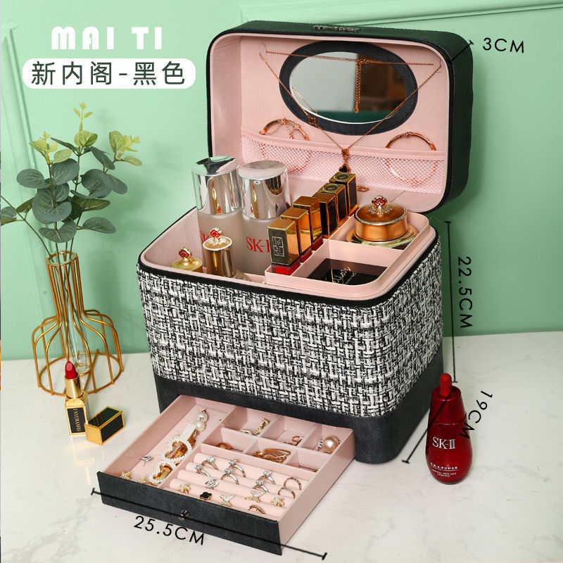 (2点セット)化粧ポーチ コスメボックス 大容量 化粧箱 メイクボックス 手提げ化粧箱 かわいい おしゃれ 女性のお気に入りポーチ 多層テーブル化粧品収納ボックス