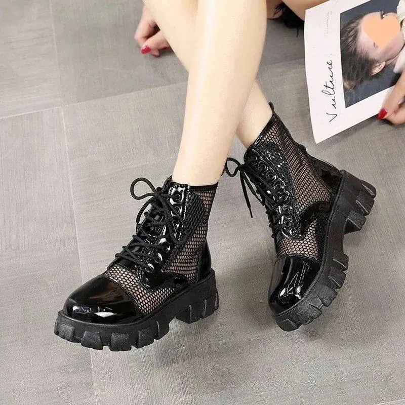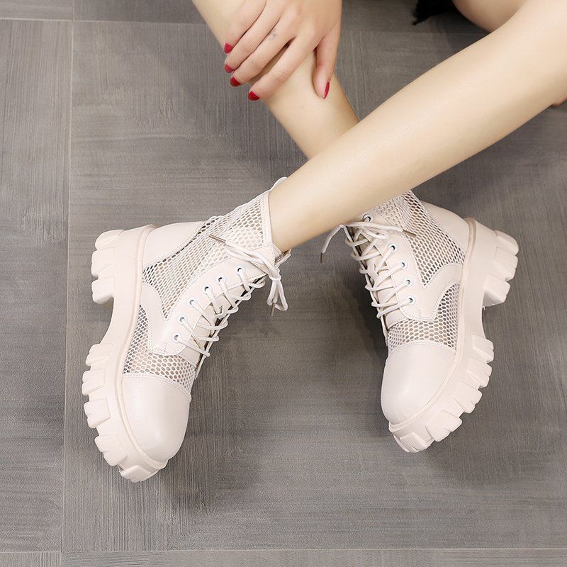 厚底シューズ ヒールパンプススニーカーシューズブーツ厚底 ブーツ サマー 薄手 通気性 メッシュ ブーツ 中空サンダル ショートブーツレディース 韓国ファッシ化粧ポ