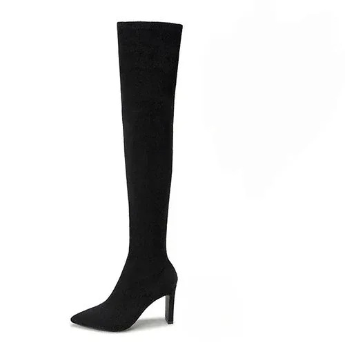 ハイヒール ロングブーツ 女性 新作 ブロックヒール 膝上ブーツ 脚長効果 ハイカット ストレッチブーツ