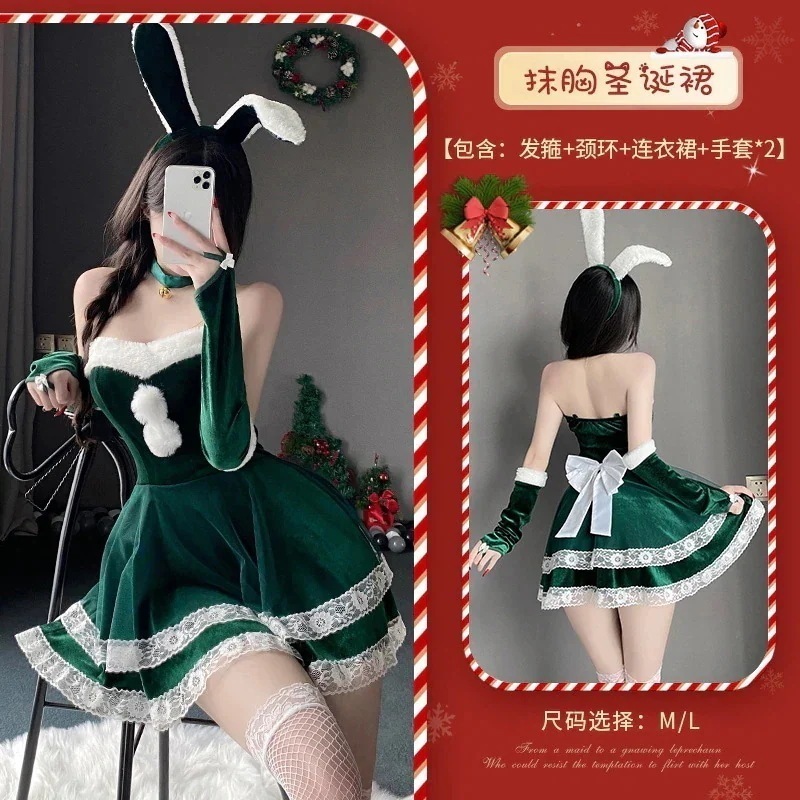 【急速以内に出荷】 アンカー バニーガール サンタコスプレ ドレス クリスマス 制服 レディース コス パフォーマンス衣装 ビスチェ 新年 韓国ファッションクリスマスコスプレ