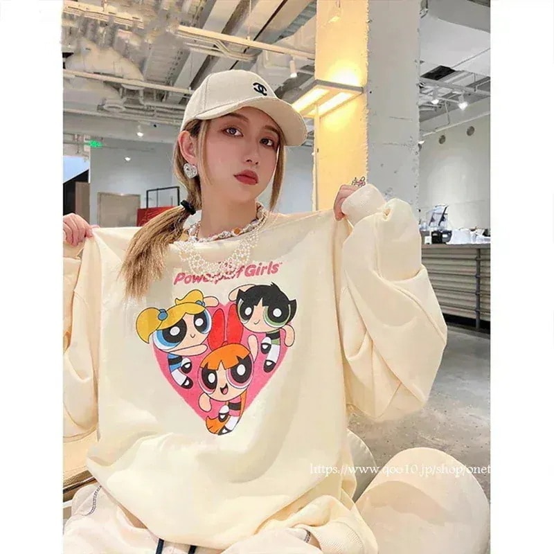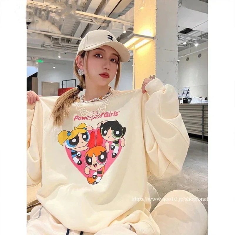 韓国 パワーパフガールズ 可愛い ゆったり トップス カジュアル プリント 男女兼用 ペアルックパーカー レディースパーカー ウェア 長袖パーカージャケット ア320