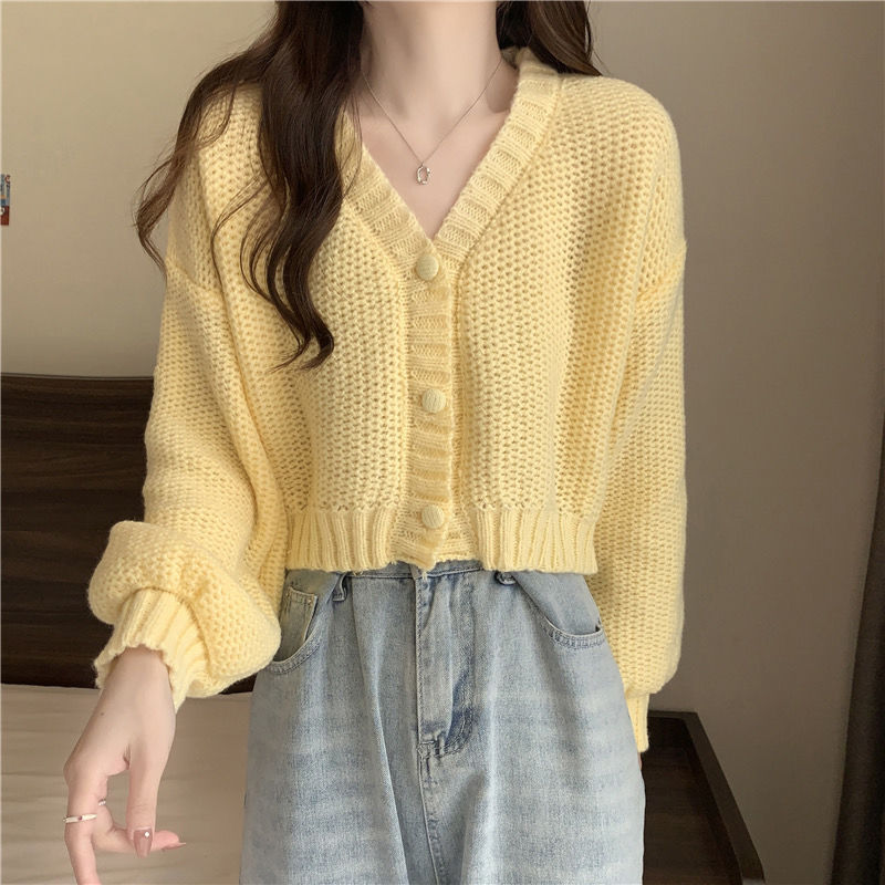 2025 秋冬 ニットカーディガン 韓国ファッション ゆったり ショート丈 長袖ニットトップス レディース