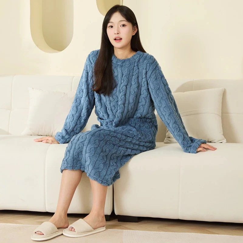 2025 秋冬 ルームウェア ワンピース 裏起毛 厚手 暖かい ゆったり ロング丈 カジュアル レディース パジャマ ワンピース