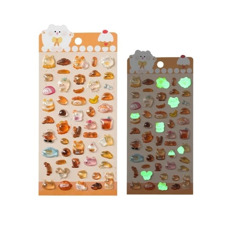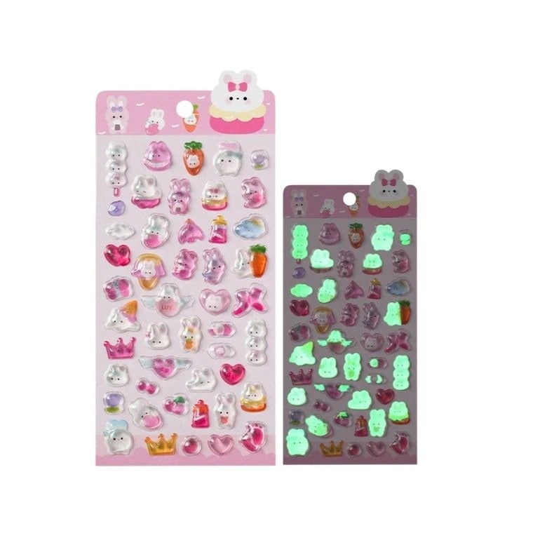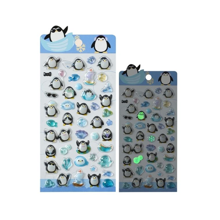 【14時〆国内当日発送】 3dシール 立体シール シール キャラクター おはじきシール 夜光 光る ぷくぷく 透明 クリア 蓄光 猫 ペンギン うさぎ 海 キラキラ 夏