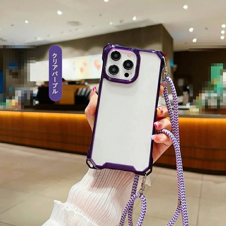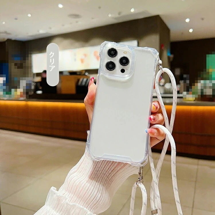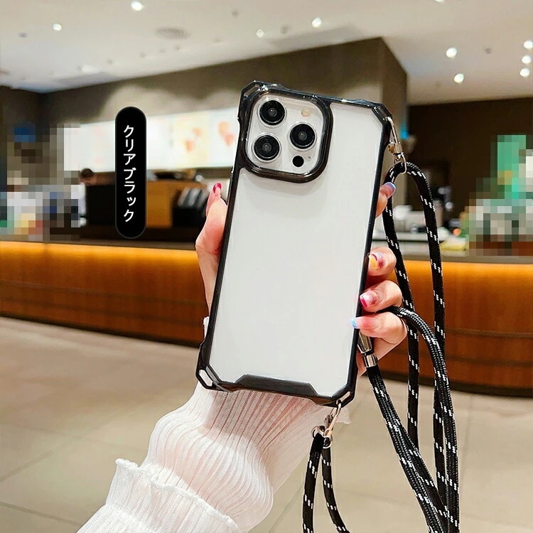 超低価格iphone16ケース ショルダー iPhone16 ケース スマホショルダー カバー クリア 背面透明 ショルダーストラップ 肩掛けベルト付き 長さ調節可能 TPU +プラスチック 角 保護