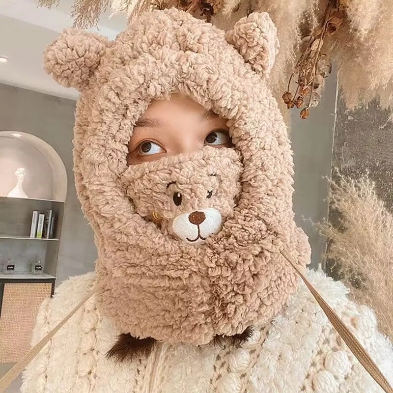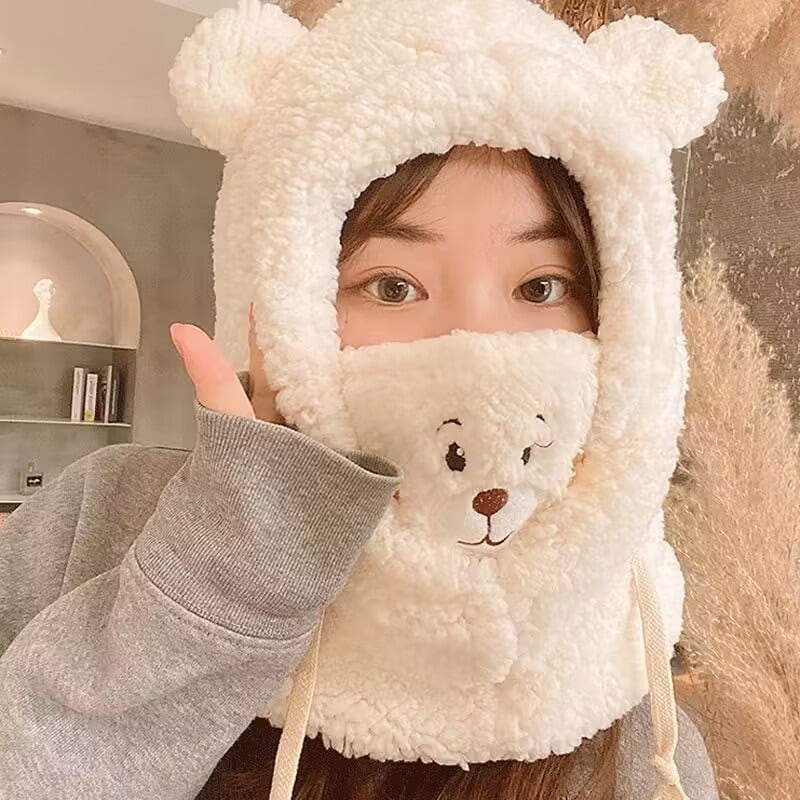限定数量秋冬新作帽子可愛い くまちゃん マスク 防風 ウォーム 帽子 厚手 秋冬 必需品 ふわふわ ハット