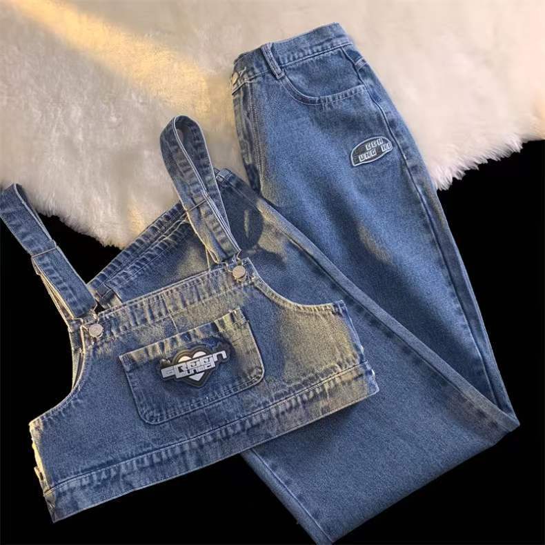 今だけ2024 春夏 セットアップ カジュアル ショート丈トップス ジーンズ ファッション シルエット ハイウエスト ワイドパンツ ストレートパンツ ハイウエスト こなれ ライクサイズセットアップ