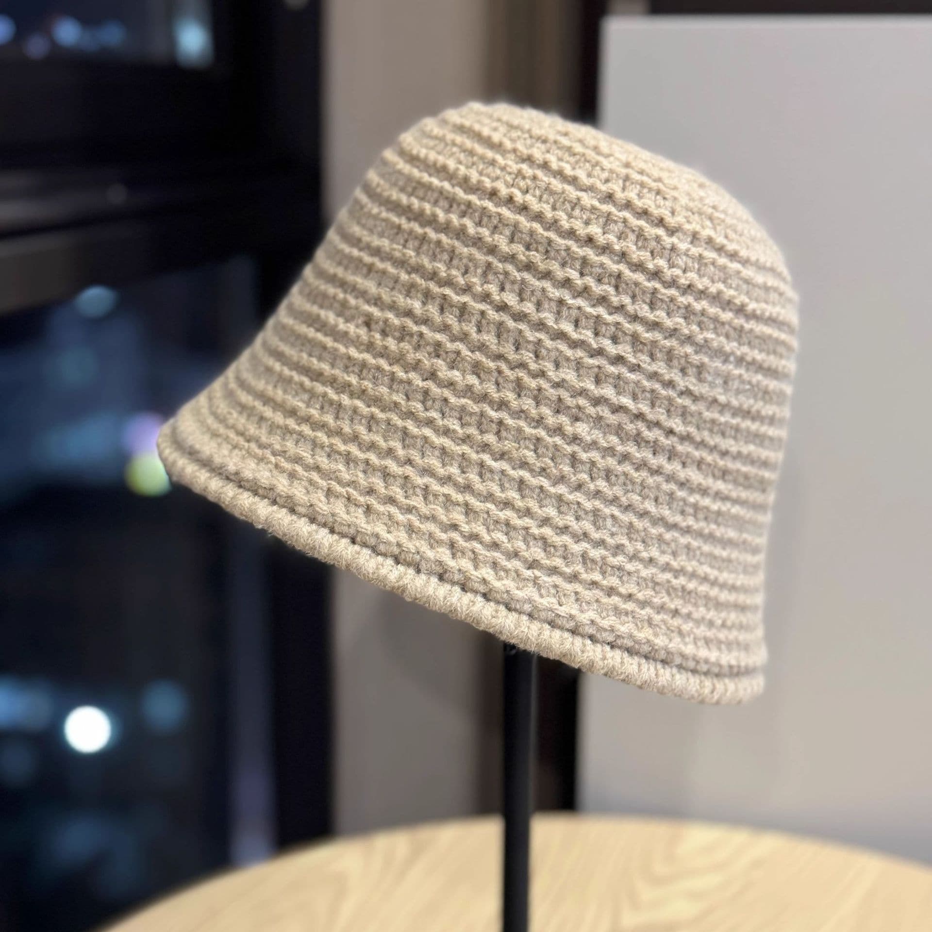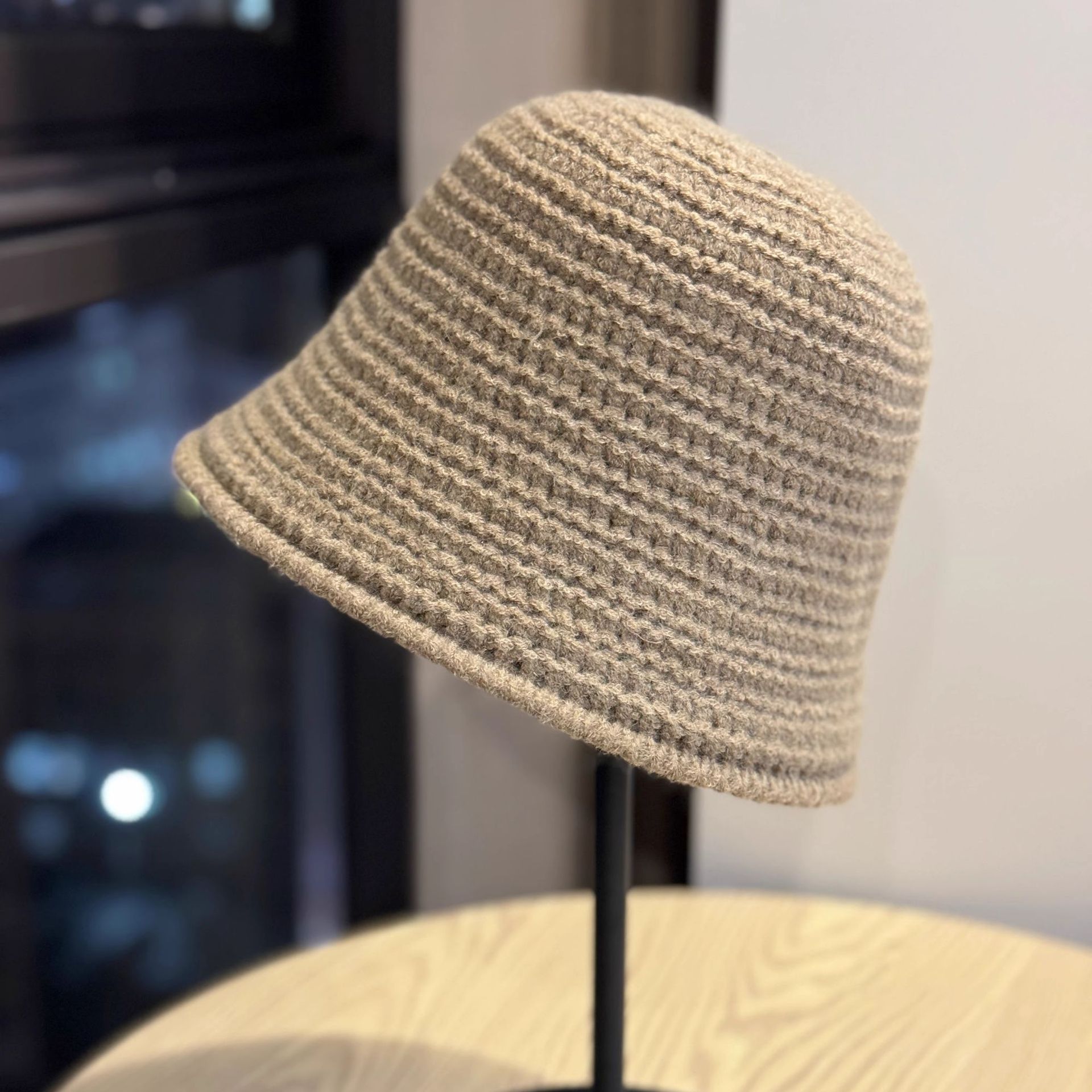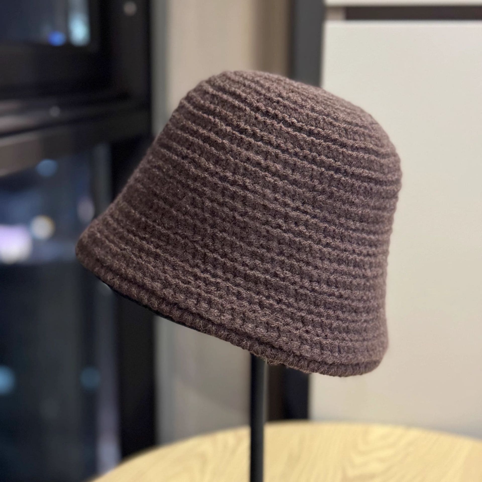 【高品質の製品】レトロな漁師帽子女性ドームバケツ帽鐘型ニット保温キャップ顔出し小鉢帽