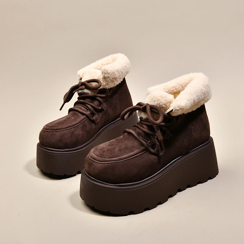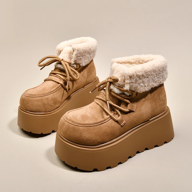 大人気2025秋冬 韓国っぽ 厚底ムートンブーツ 防寒暖かいあったか カジュアル レディース厚手 フェミニン美脚脚長靴風スタイルアップ 編み上げ リブ ミドルブーツレースアップシューズ 女っぽ ストリ
