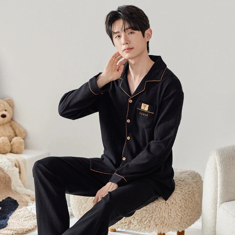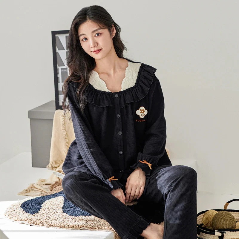 暖かくて面白い冬を購入してくださいカップルパジャマ春秋代件純綿長袖濃い系ゆるい高級感大きいサイズ2点セットホームウェア部屋着寝間着