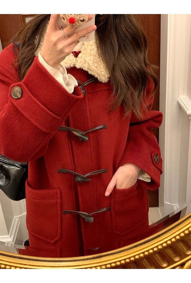 【早得!!特別価格】新品の初発/底値超目玉セール風コート レディースウール 冬膝丈ロング丈 高級感ある牛角ボタン ウールコート トレンチコート・スーツカラーコート・ウールコート