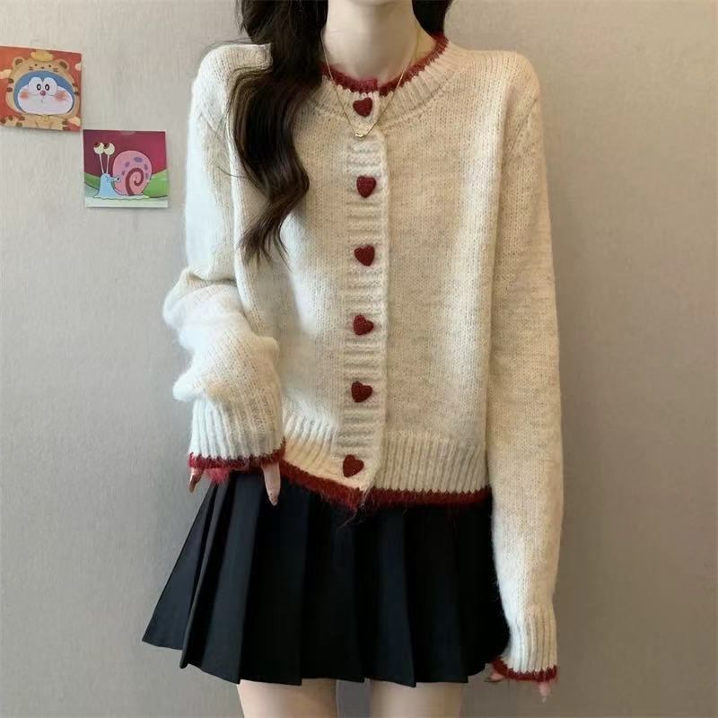 今すぐ購入カーディガンカーディガン レディース 2025秋冬新作 デザイン性 カラーブロック ハートボタン ニットカーディガン ショート丈 長袖トップス