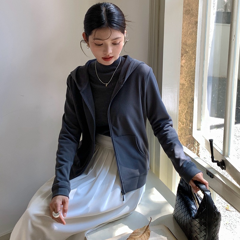 今すぐ購入フード付き ジッパー開襟 ワンピース 女性の無地 厚手 カジュアル スウェット 上品な質感 柔らかく肌触りの良い トップス アウター