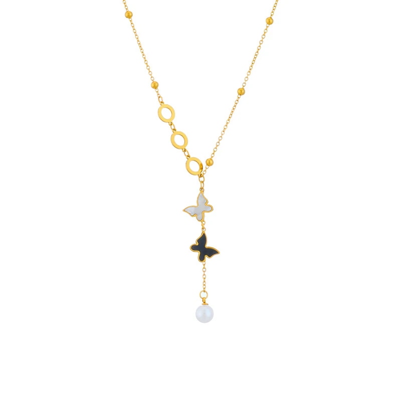 贈り物【急速出荷】円玉鎖骨チェーン セーターチェーン韓国パール蝶のネックレス短めが可愛い!チョーカーネッ