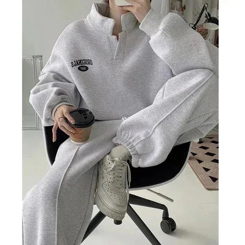 激安新入荷人気2023ブランドスウェットセットアップ上下二点長袖立ち襟アウター無地スウェットパンツ韓国ファッションレディーストレーニングウェア レディーススポーツウェアレディース