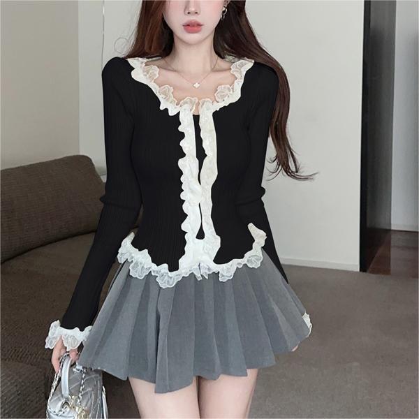 『目玉新商品』2025日韓ファッション人気なリブニットVネックレディース ニットカーディガン レース ベーシックニットセーター 快適 トップス アウター通勤