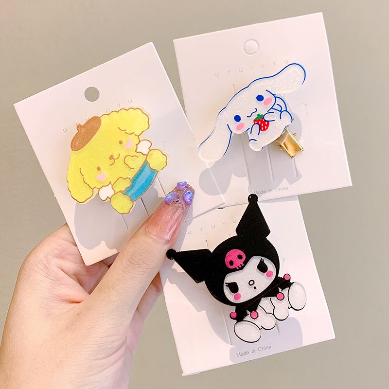 数量限定光るヘアクリップ漫画猫シナモン犬クロミクリップ髪飾りヘアクリップアクリル前髪サイドクリップ