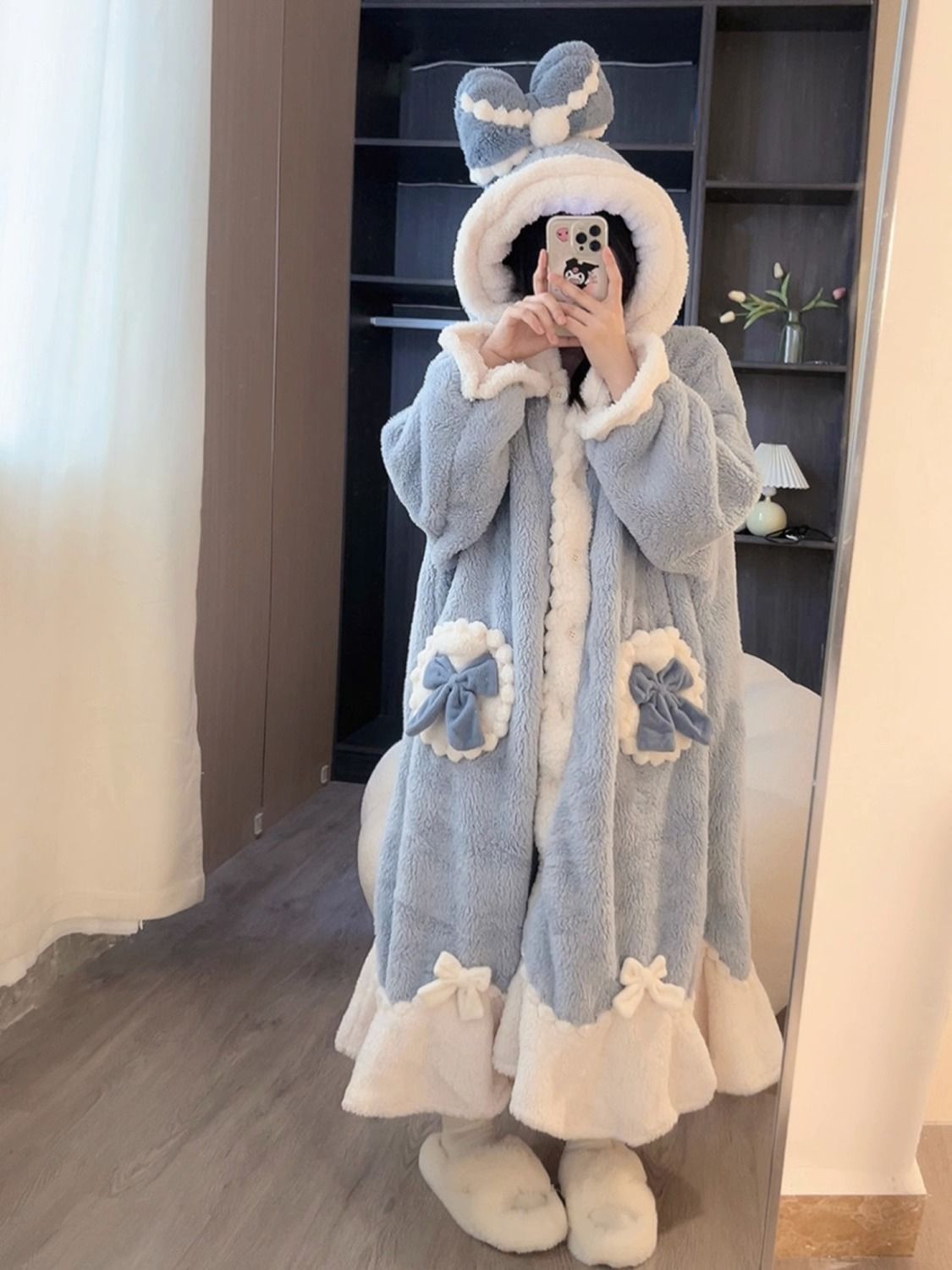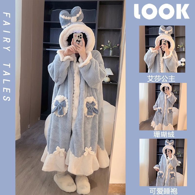 超人気新品/無料宅配/3日出荷アイサ姫パジャマの女秋冬の珊瑚の毛と毛で甘く厚手の冬のガウンと毛の部屋着のセットです