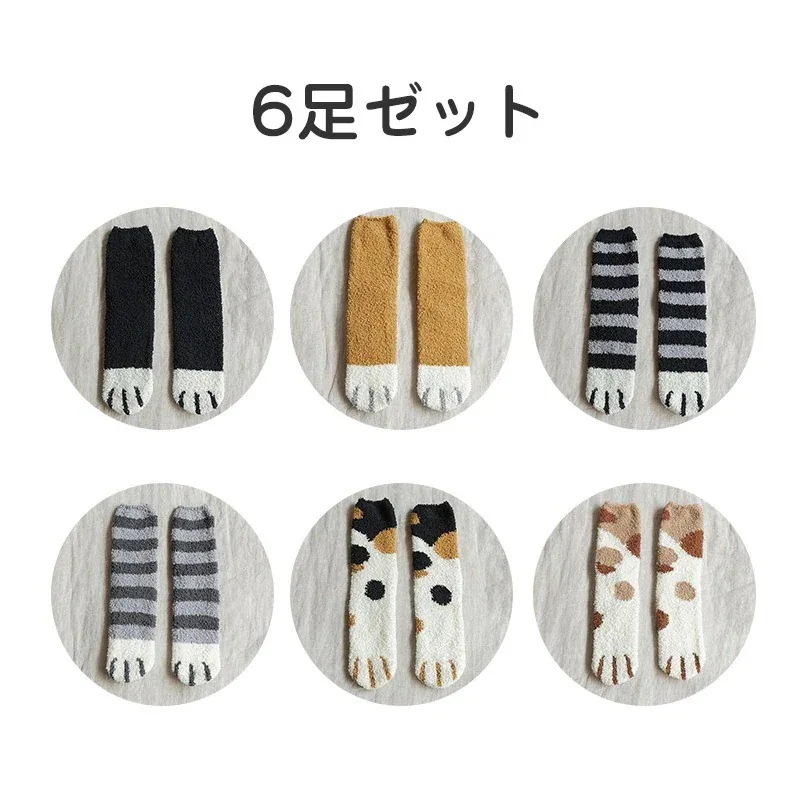 靴下 ソックス 6足セット レディース もこもこ 猫 ネコ 厚手 防寒 ルームソックス 秋冬 モコモコ 冷え取り クルーソックス あったか目玉商品~超人気