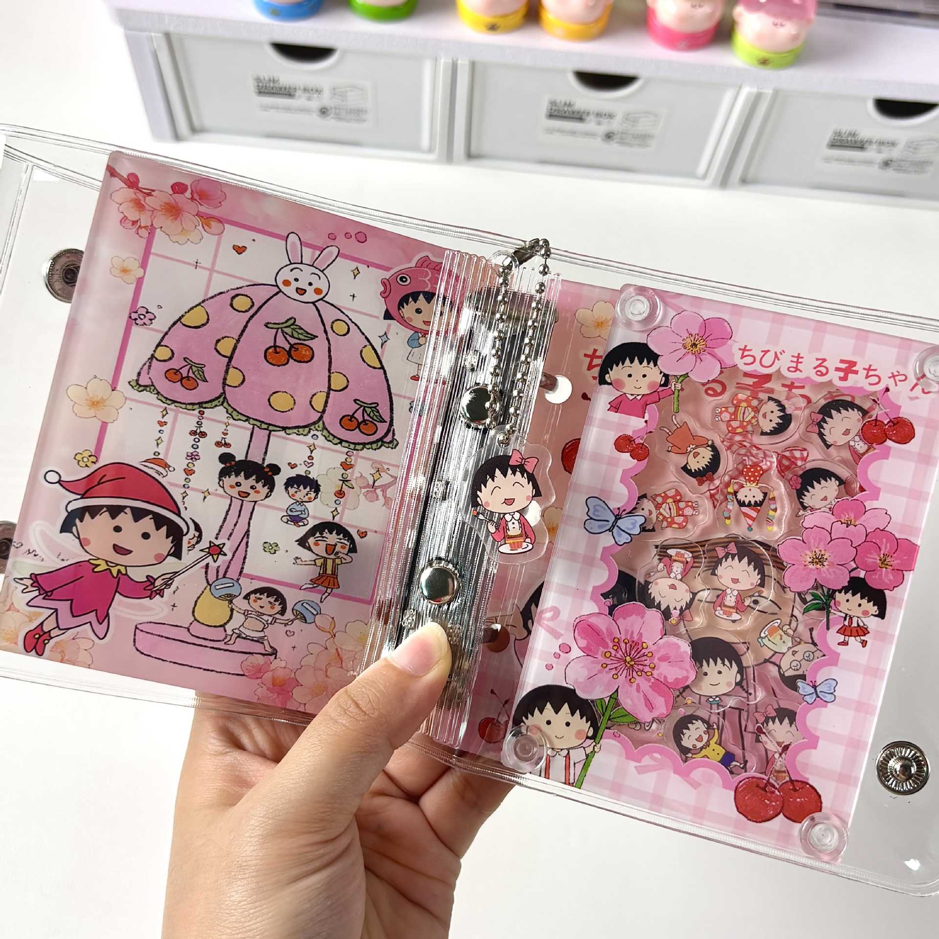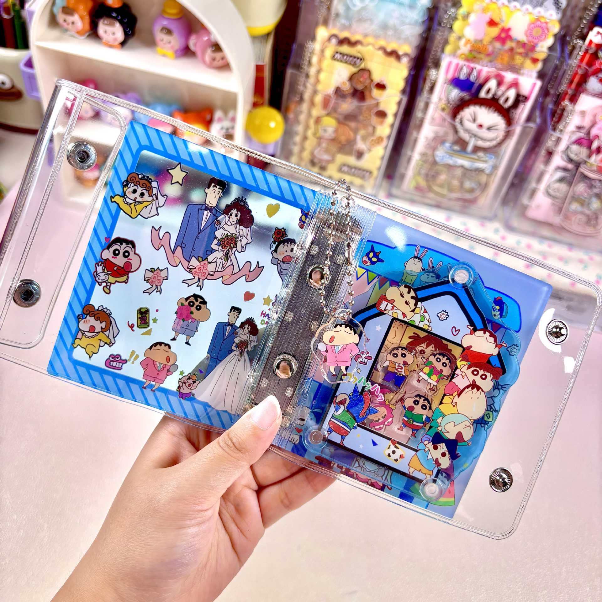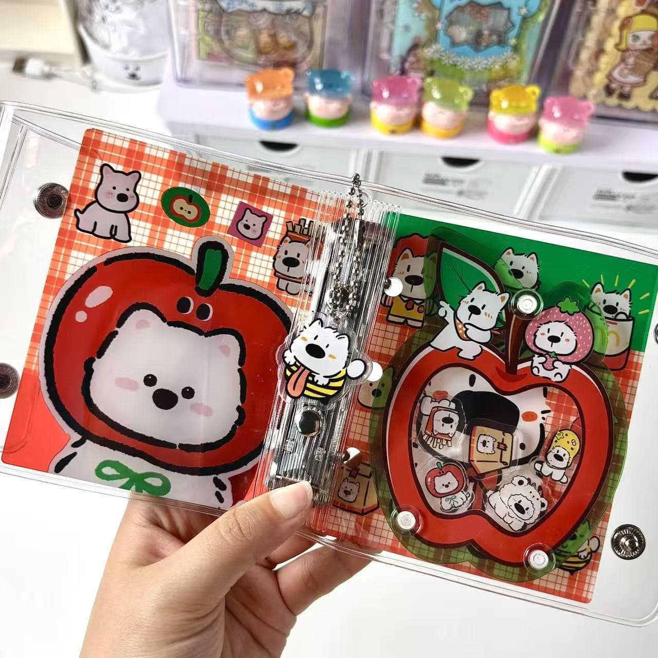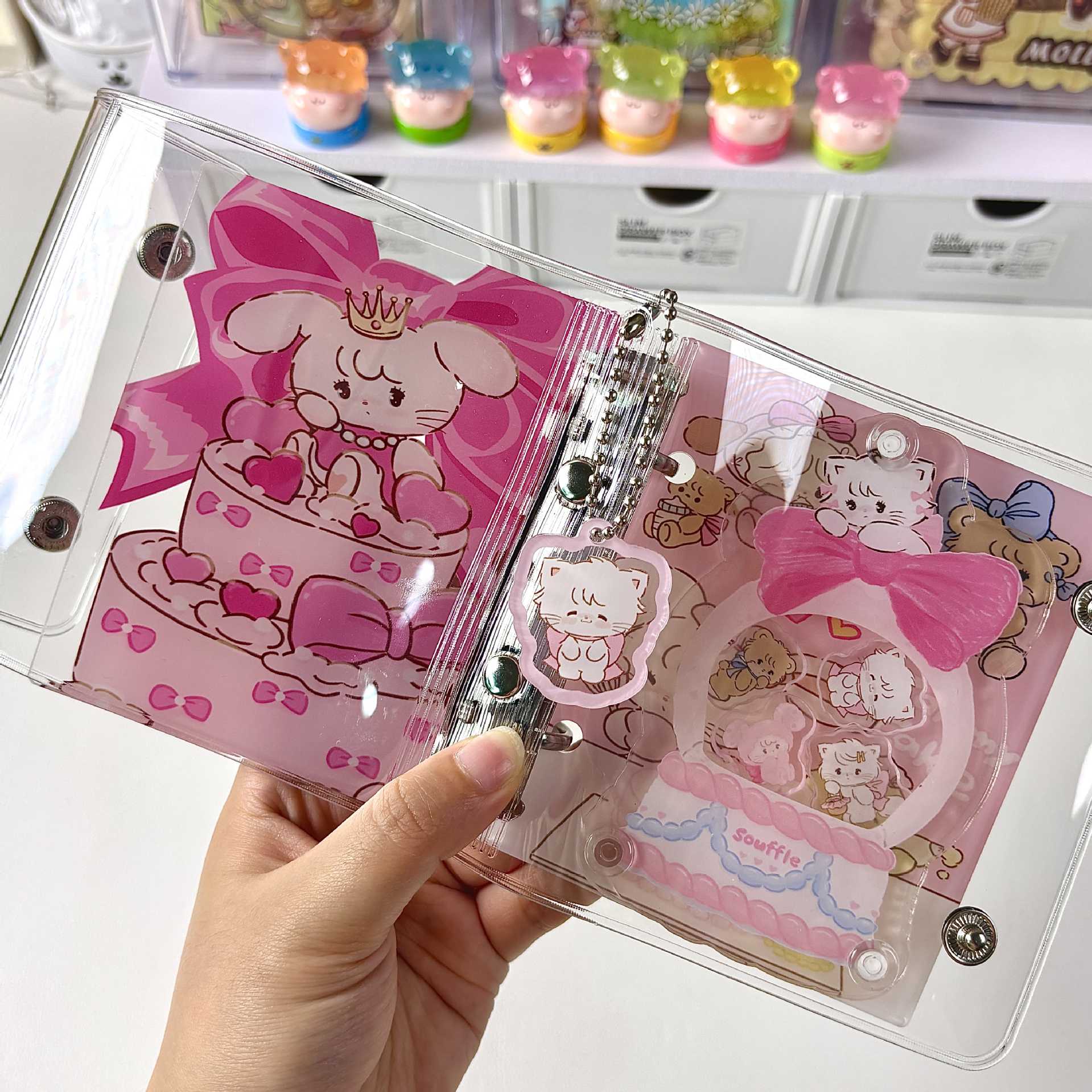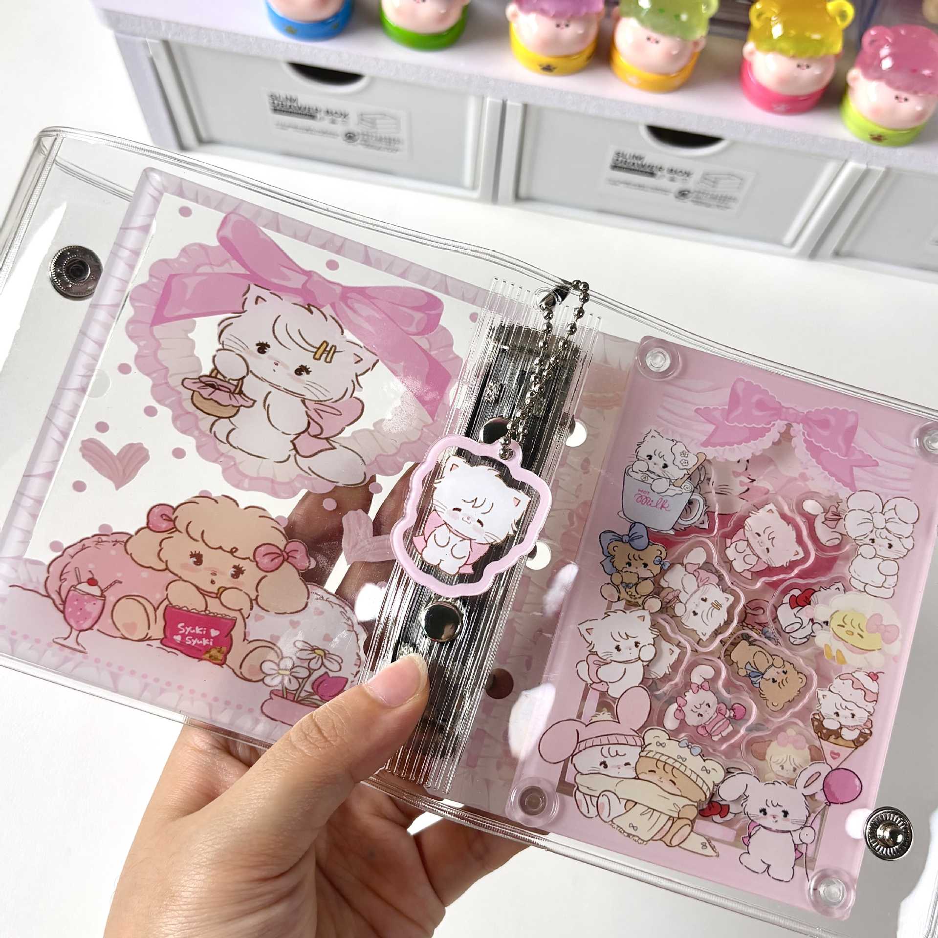 【A8シール帳】クリア バインダー 3穴 手帳 中身リフィル付き シール帳 コラージュ ノート 韓国 文房具 雑貨 学生 メモ帳 プレゼント シール