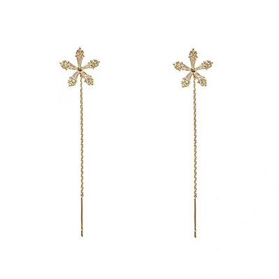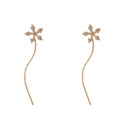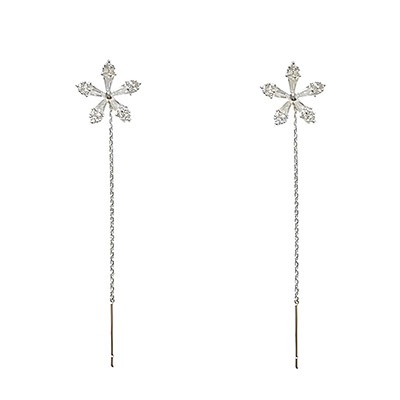 エフティービーピアス レディース 花 フラワー 揺れる ロング チェーンピアス アメリカンピアス キュービックジルコニア 18kコーティング ゴールド プラチナ ピンクゴールド 金属アレルギー対応 華奢 上品 大人
