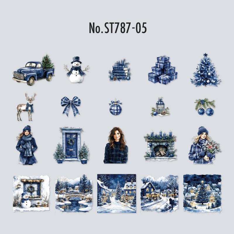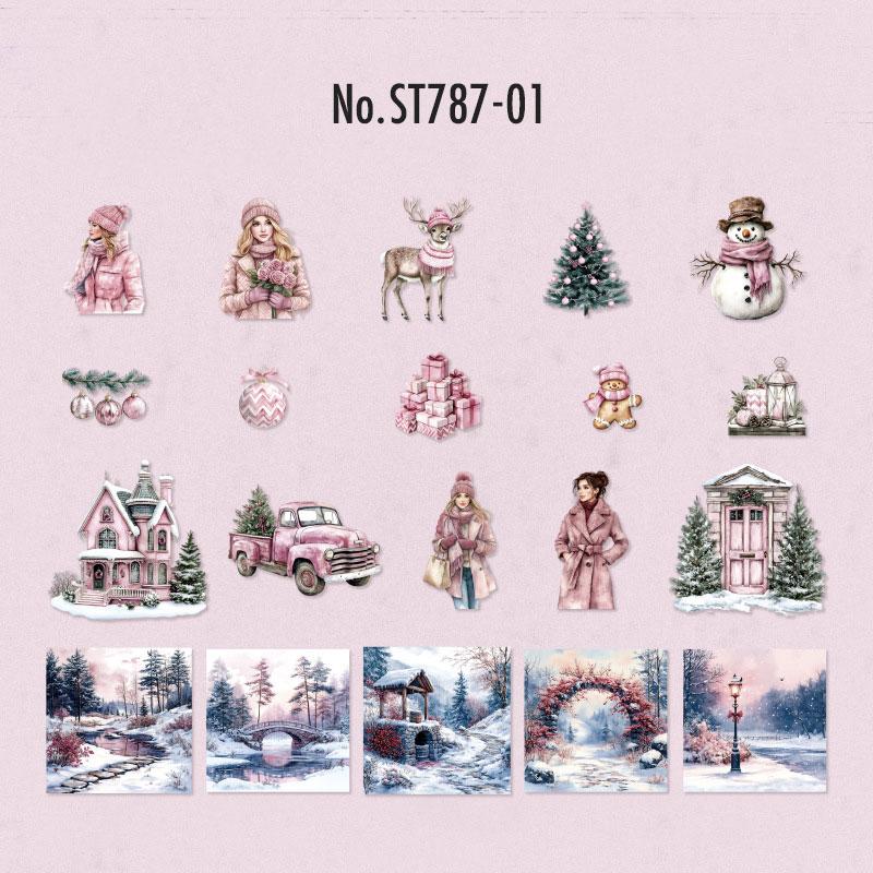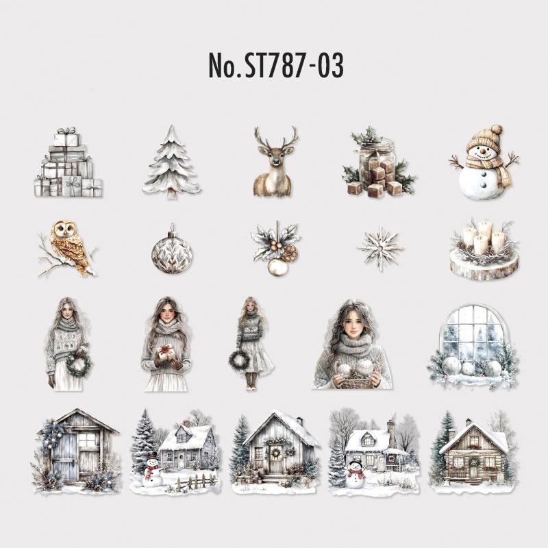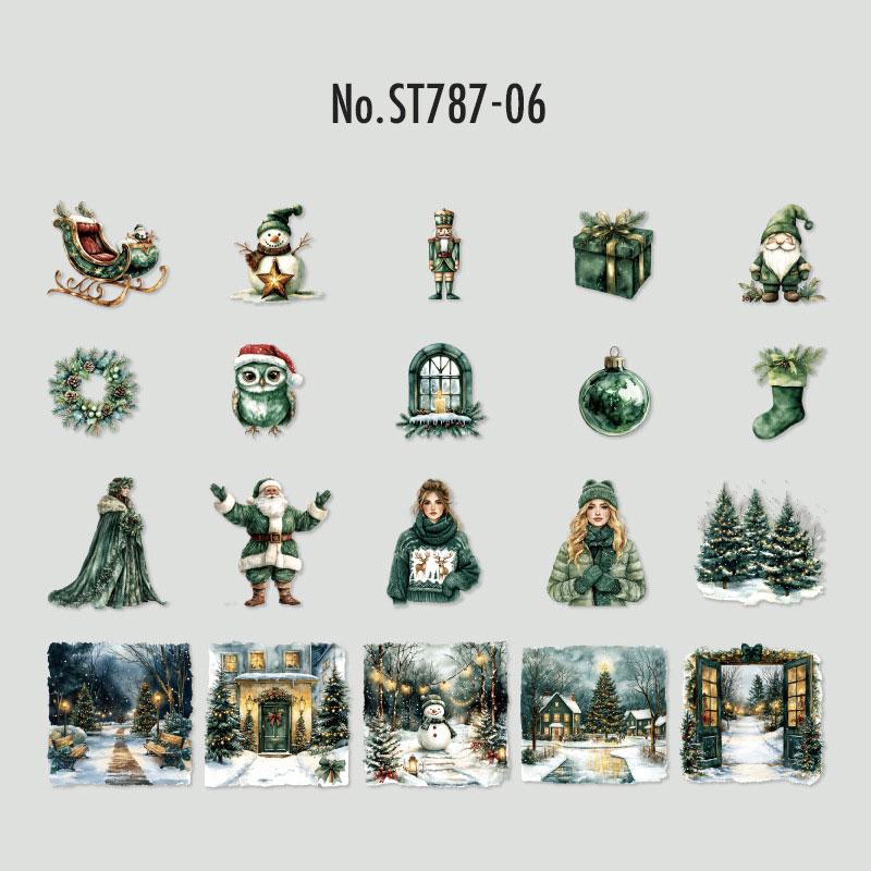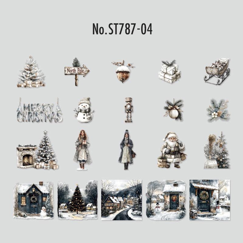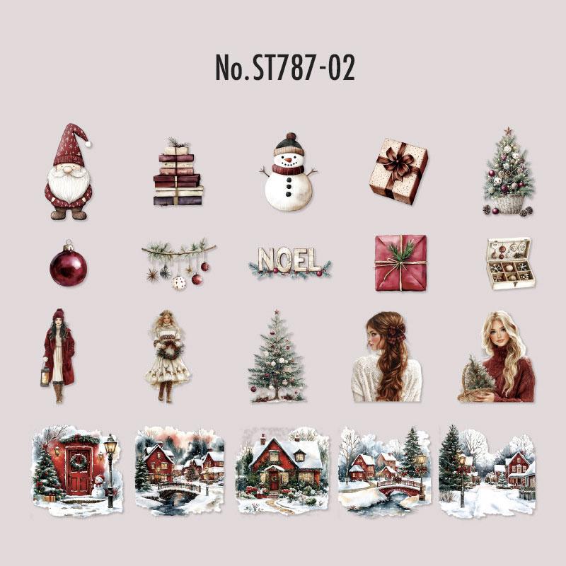 ST787 クリスマス 人物 女性 サンタクロース プレゼント ツリー 雪だるま コラージュ素材 コラージュ シール ステッカー 紙もの 手帳 日記 海外 紙モノ 紙物