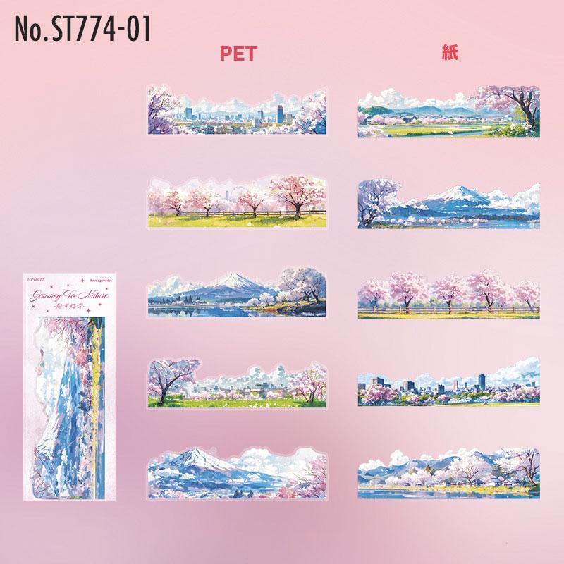 ST774 景色 風景 海辺 桜 富士山 紅葉 雪国 四季 春夏秋冬 シールブック コラージュ素材 コラージュ シール ステッカー 紙もの 手帳 日記 海外 紙モノ 紙物