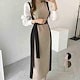袖切り替え ニットワンピース ロング配色大きいサイズ レディース 秋冬 結婚式 きれいめ タイト フォーマル 大人 上品 チュニック one-piece