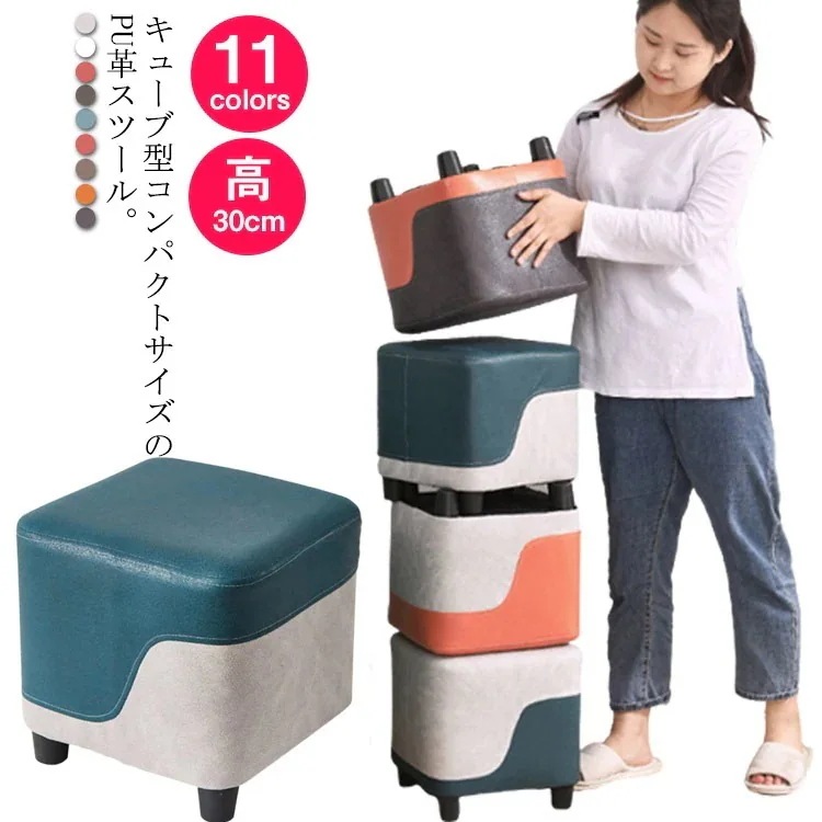 全11色 配色 ミニスツール 感 低い椅子 スツール 30*30*30cm 高30cm 木製 軽量 無地 低め キューブ 椅子 子供用 イス いす 正方形 ロースツール 玄関 リビング
