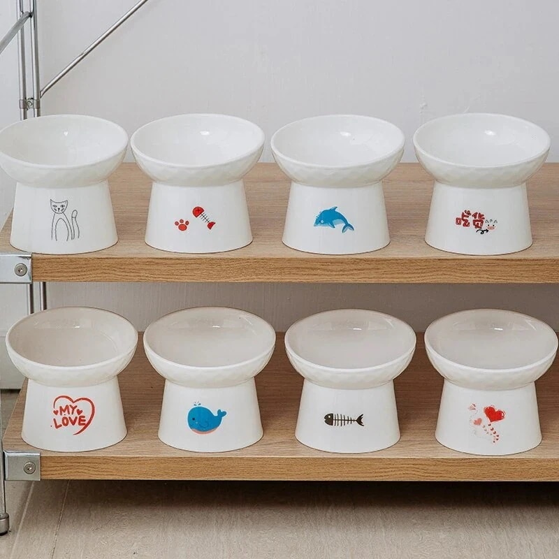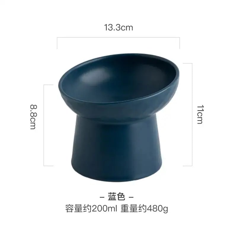 セラミックペットボウルハイフットネックプロテクターキャットボウルフードボウル傾斜口ボウルアンチブラッ