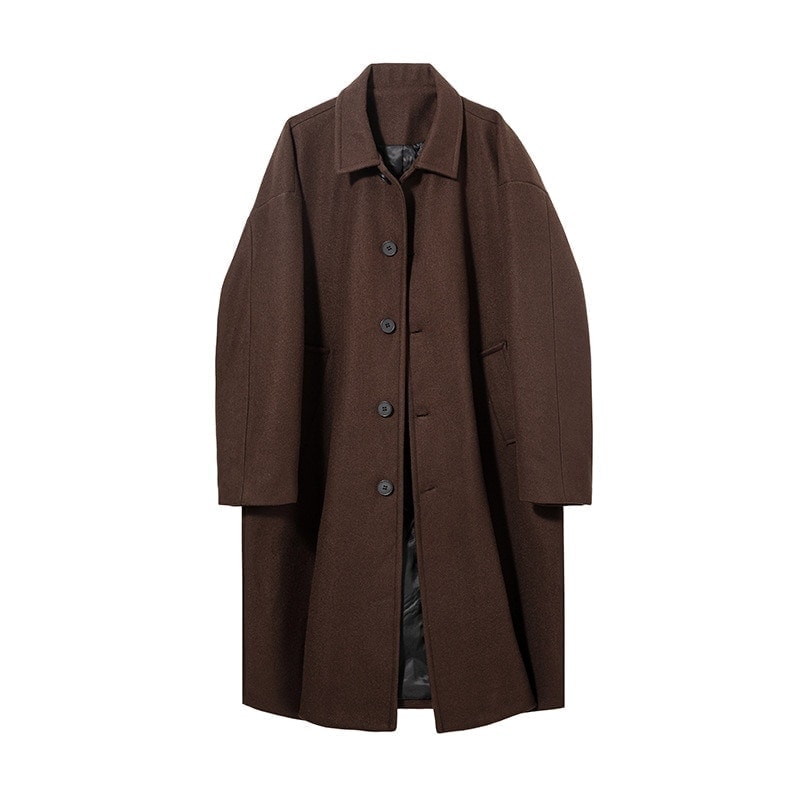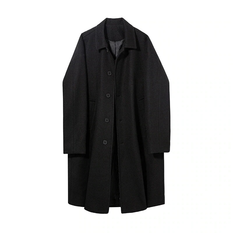 レトロなロングコート男の新商品の襟が厚くてゆるい質感のカジュアルなラシャコートアウターwudamne