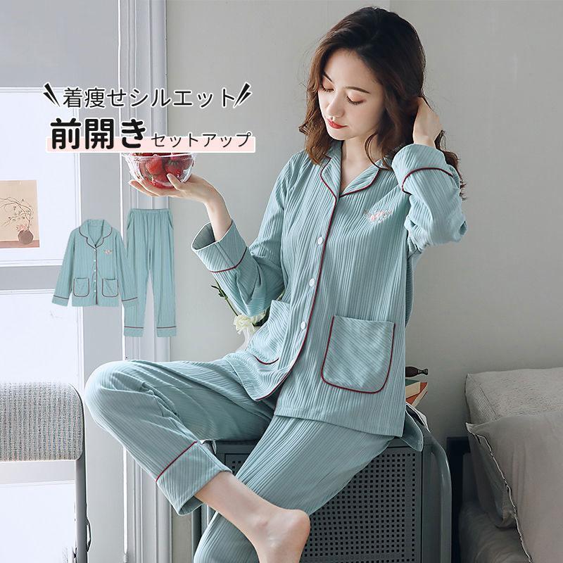 パジャマ セットアップ レディース 花柄 ウェア 前開き 薄手 部屋着 長袖 透気 上下セット 可愛い 寝巻き ナイトウェア