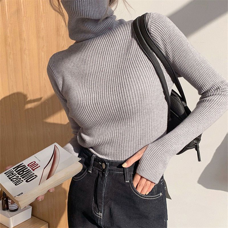 25新作 おしゃれ ック インナー セーター アンダーウェア トップス アウター 大きいサイズ 長袖 タートルネック ベーシックニット 人気なリブニット