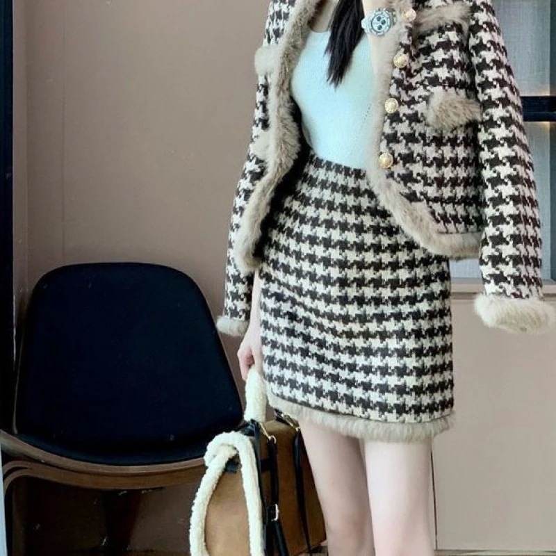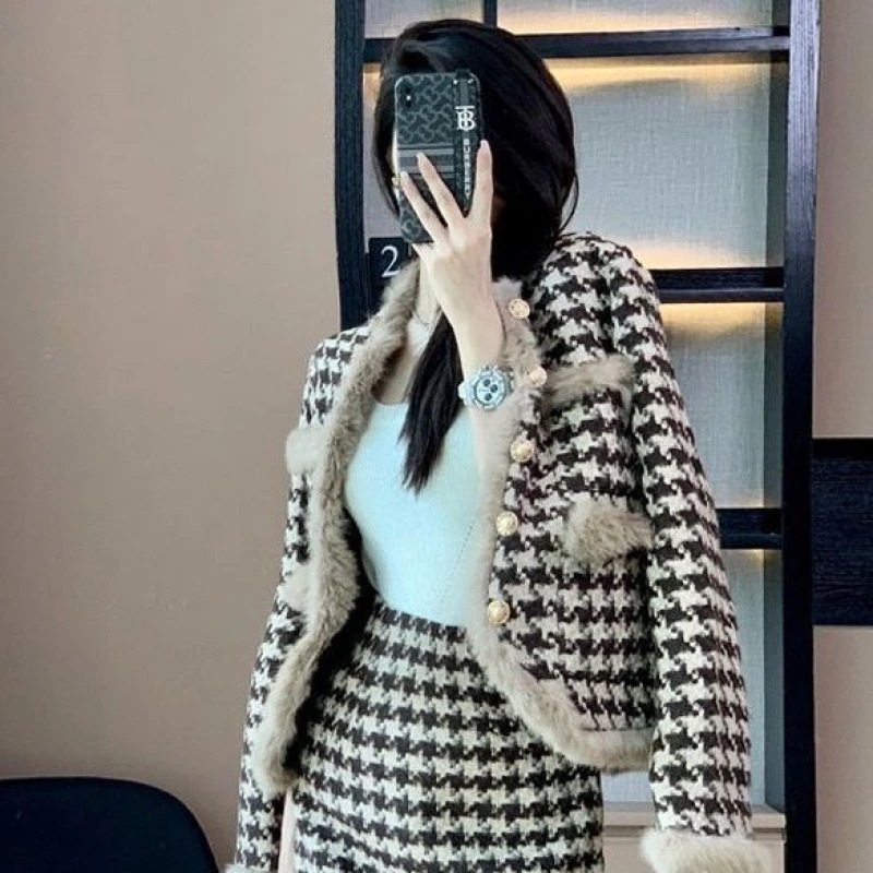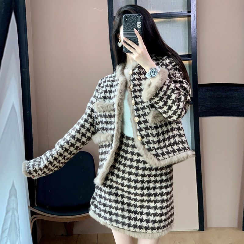 プラスサイズのセレブ小さな香りのよいスタイル肥厚コート女性のルーズ痩身脂肪 mm ウール暖かいスカートスーツ