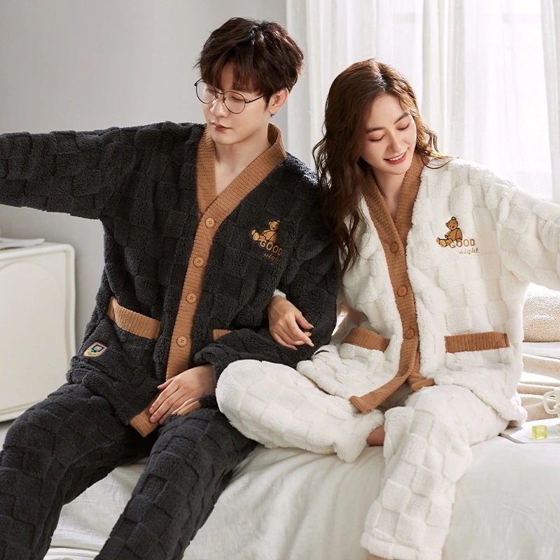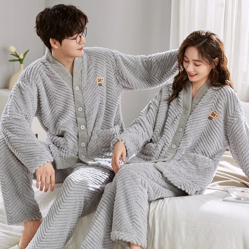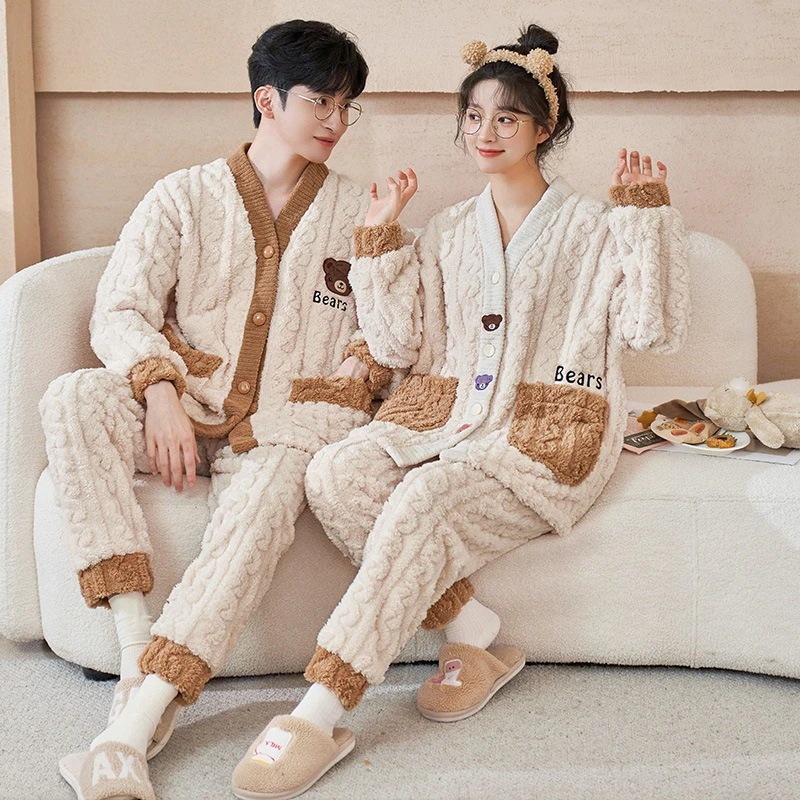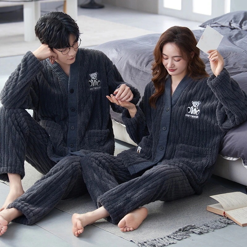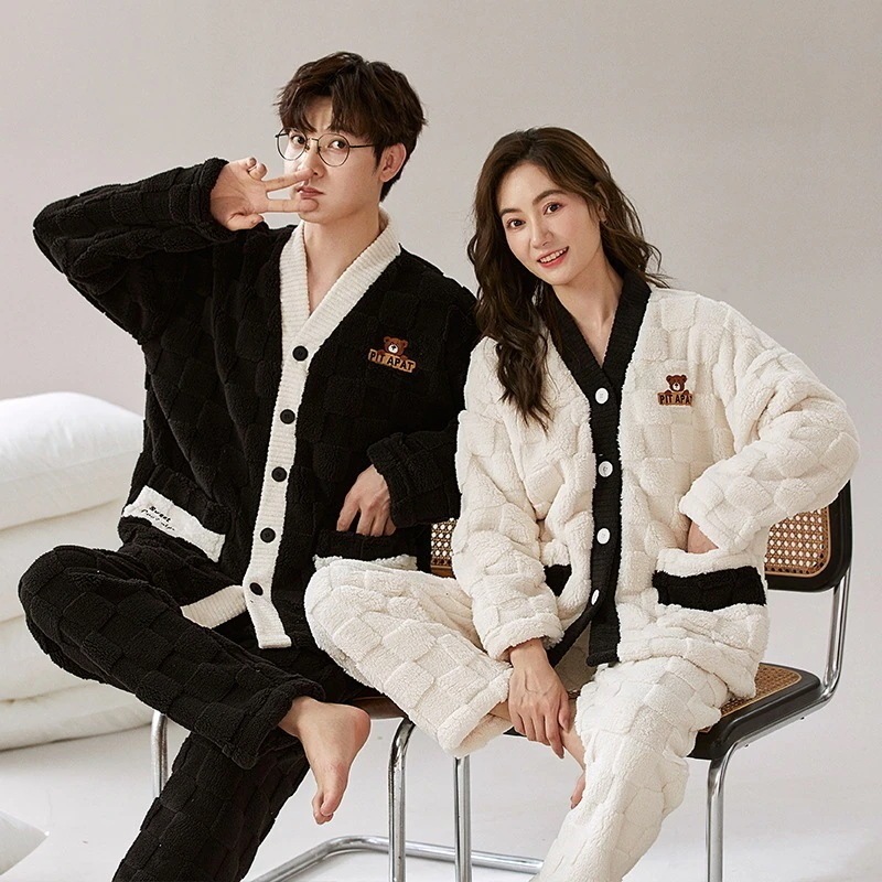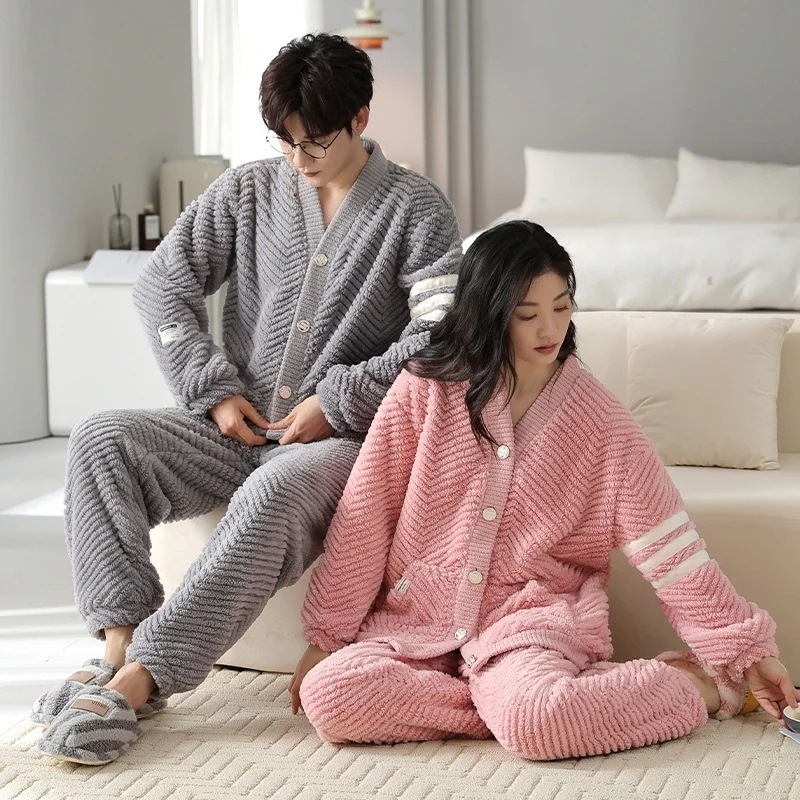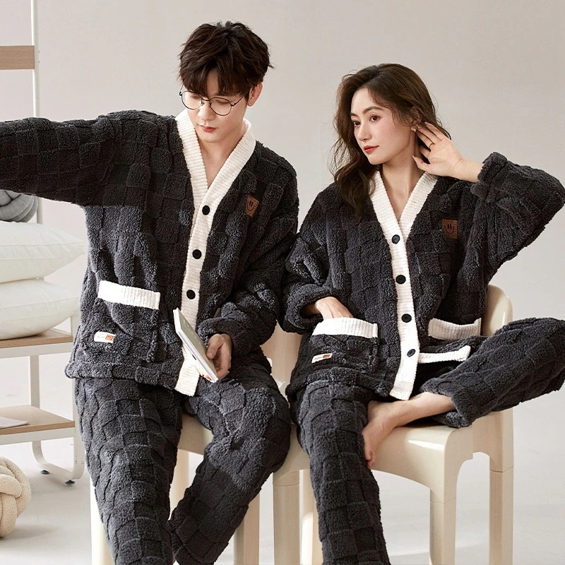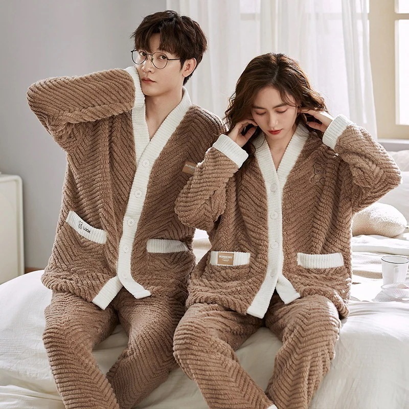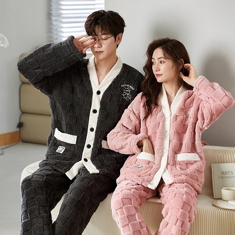 大人気 上品 パジャマ フランネル カップルペアルック ウェア ペアパジャマ フランネル長袖パジャマ フランネル韓国風 大きいサイズ 前開きウェア レディースメンズ 部屋着 シンプ