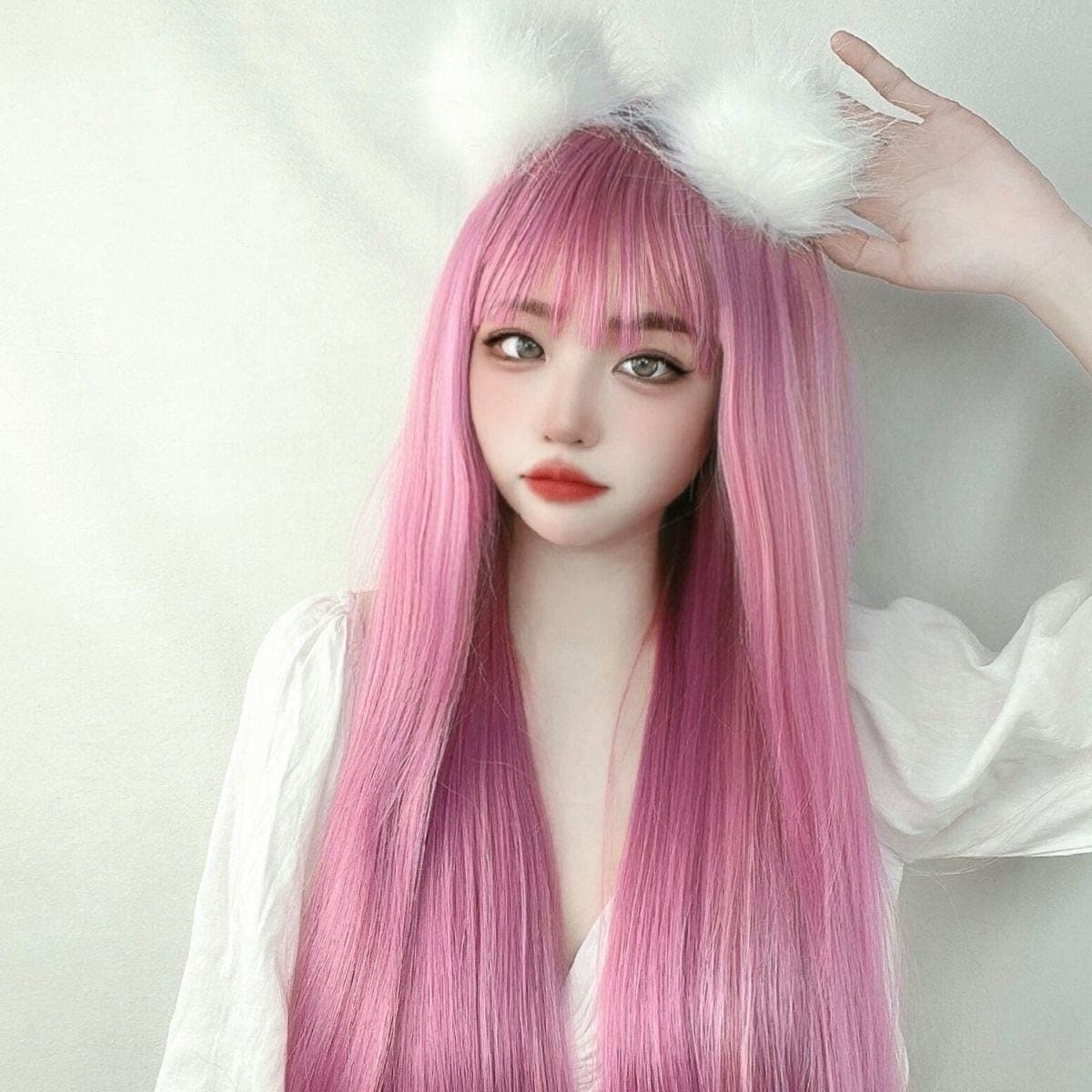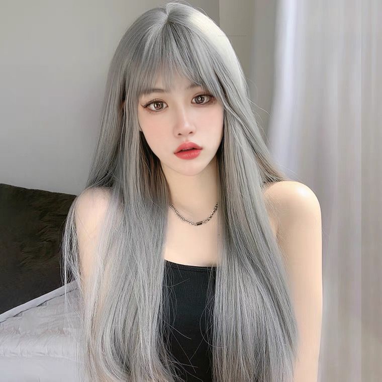 本日の商品ウィッグ ロングストレートヘア エア前髪 スモークグレーブルー ヘッドギア セカンダリー ウィッグ ウィッグ ロング 前髪ウィッグ メイド服 サンタ プレ クリスマスコスチ