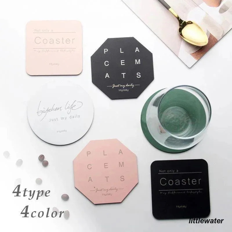 コースター 金属 グラス コップ マグカップ おしゃれ モノトーン シンプル 英字 カフェ バー 黒 白 テーブルウェア 洗える 男前イン