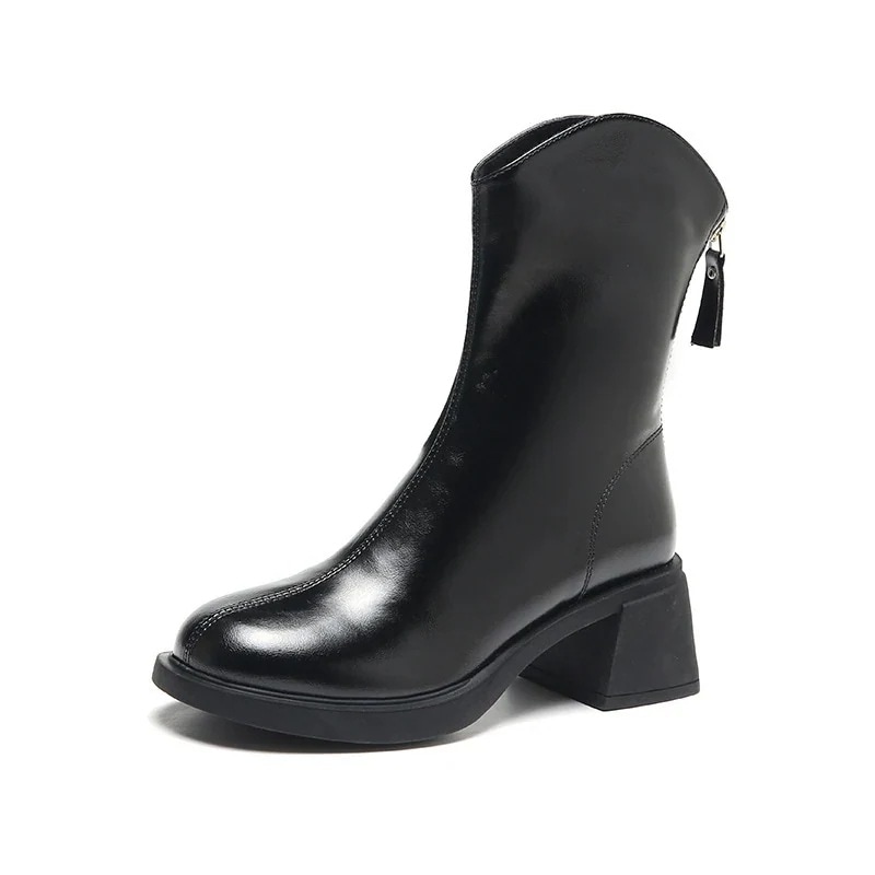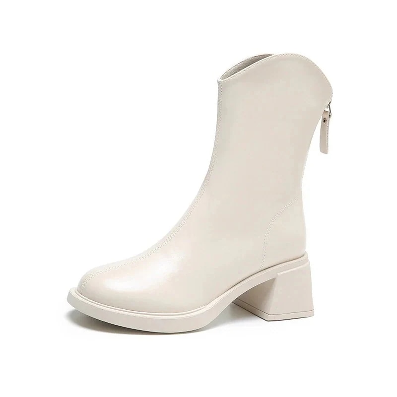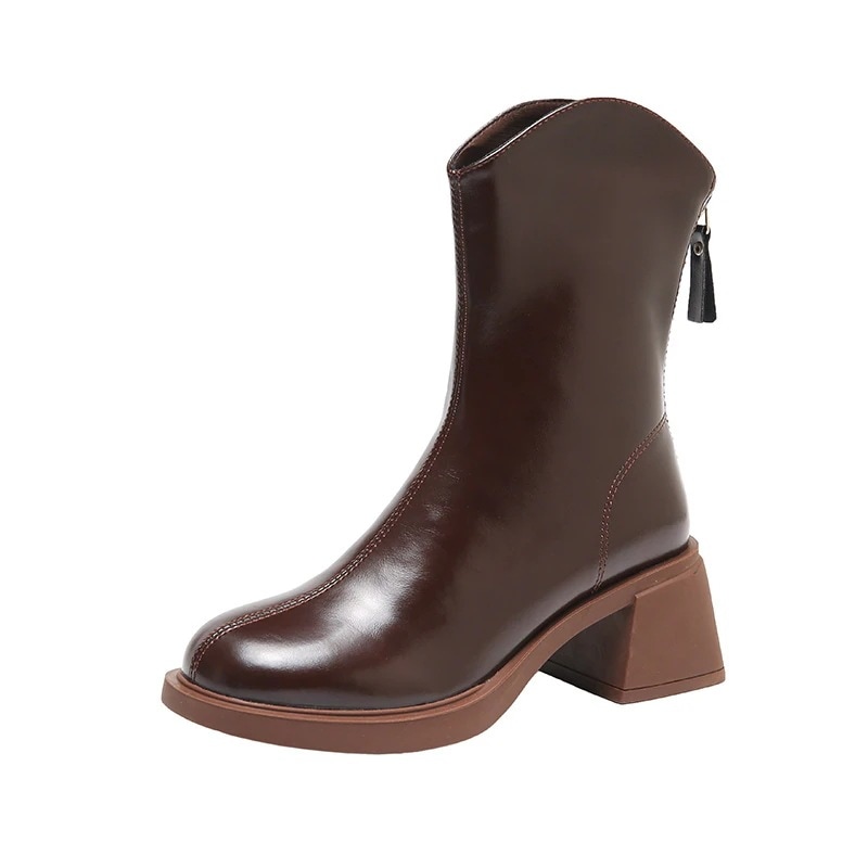 ブーツ 太ヒール ソフトレザー 後ろファスナー 6CMヒール ショートブーツ PUレザー レディース ブーツ