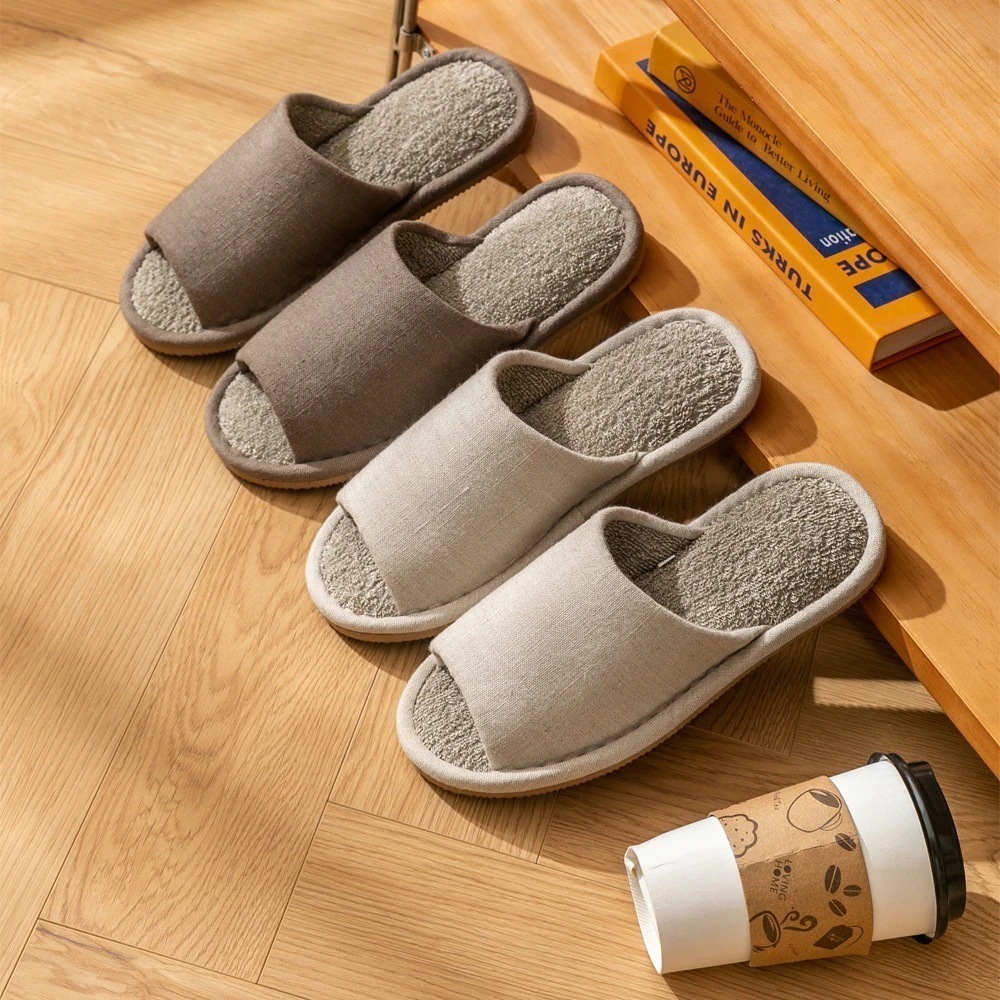 ミュートカップル全麻スリッパ滑り止めタオルンモップフロア屋内ホームスリッパ女性