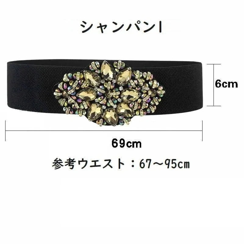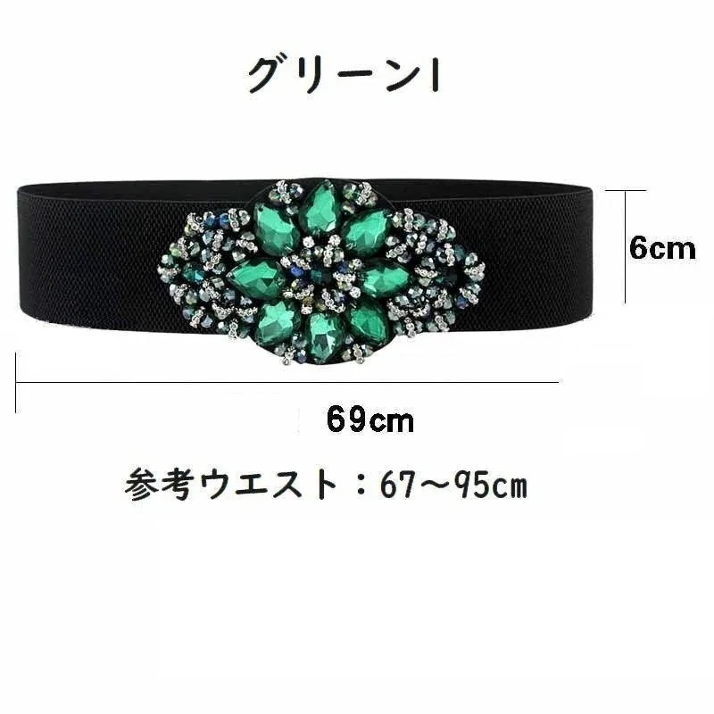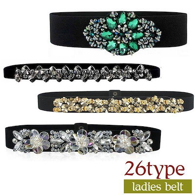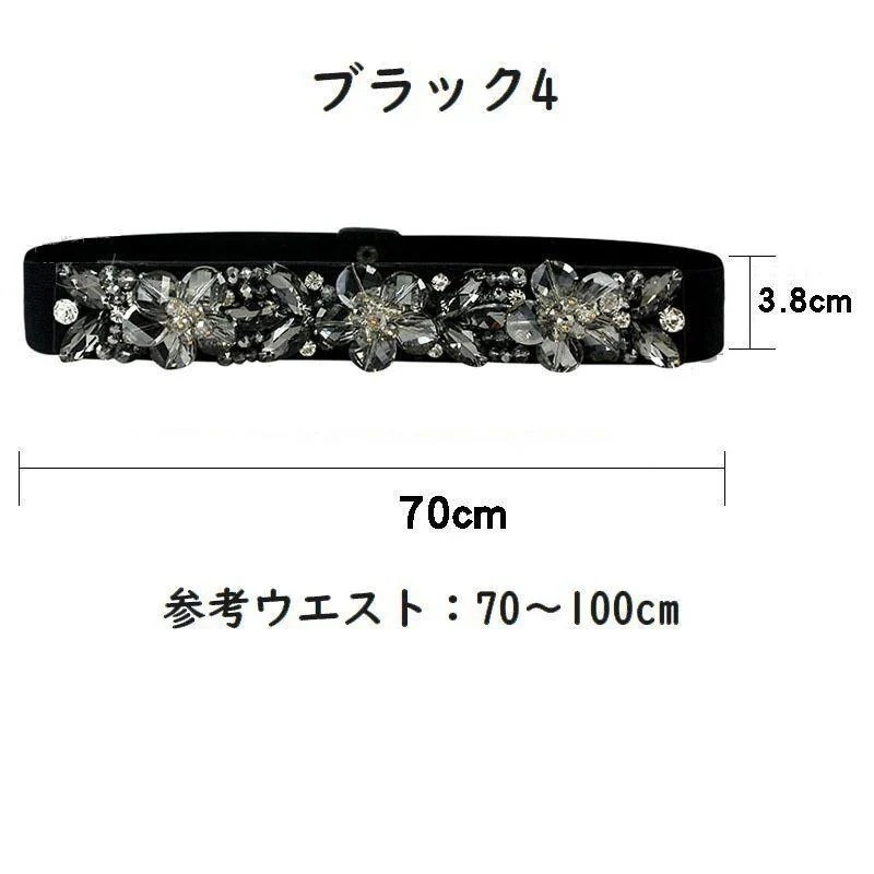 ベルト レディース 女性用 ビジュー ラインストーン ビーズ フラワー 花 太め ゴム 伸縮 ウエスト キラキラ おしゃれ かわいい ゴージャス