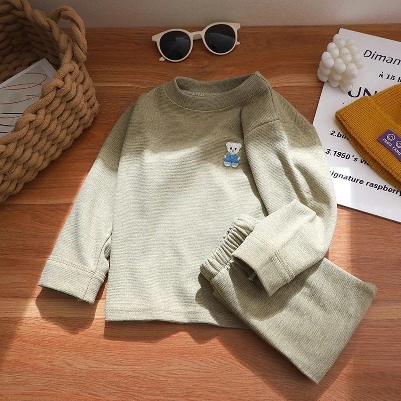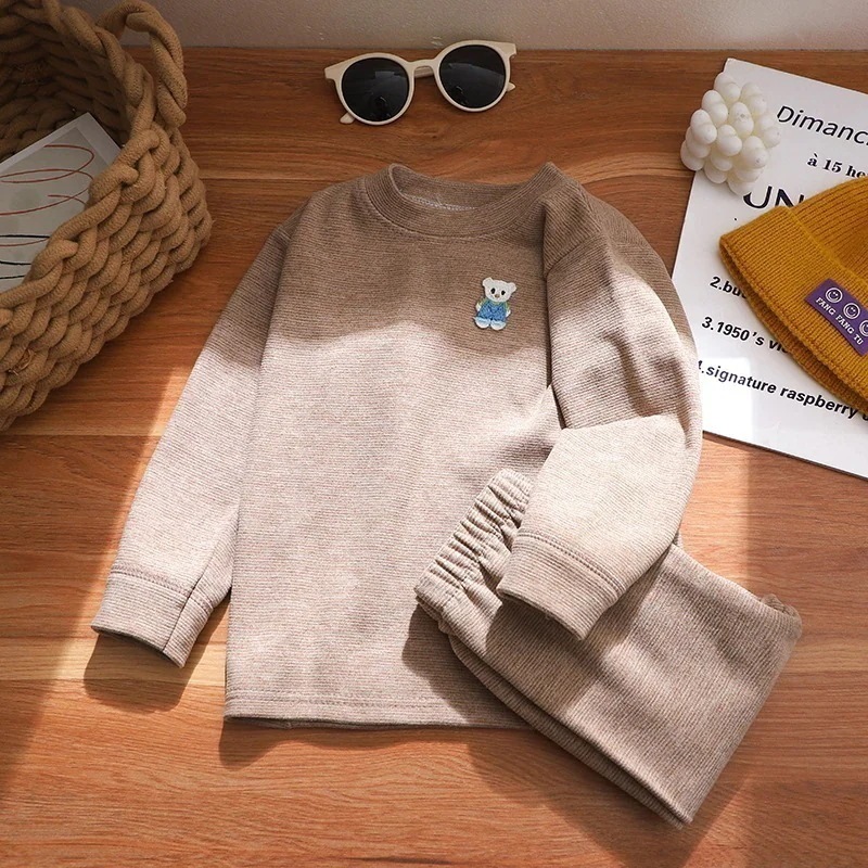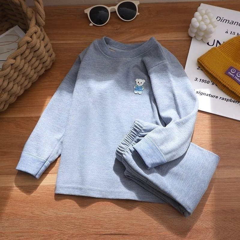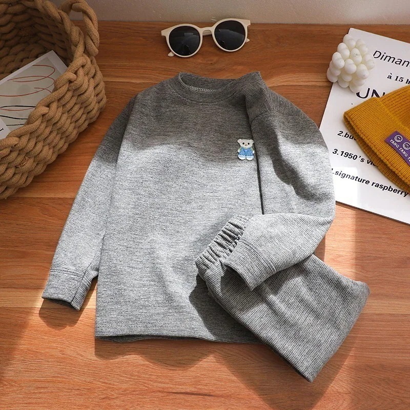子供用のパジャマ 子供用防寒肌着セット男の子用中・大サイズの子供用服とロングジョン女の子用パジャマ両面ウールシルク化粧ポーチ-大容量