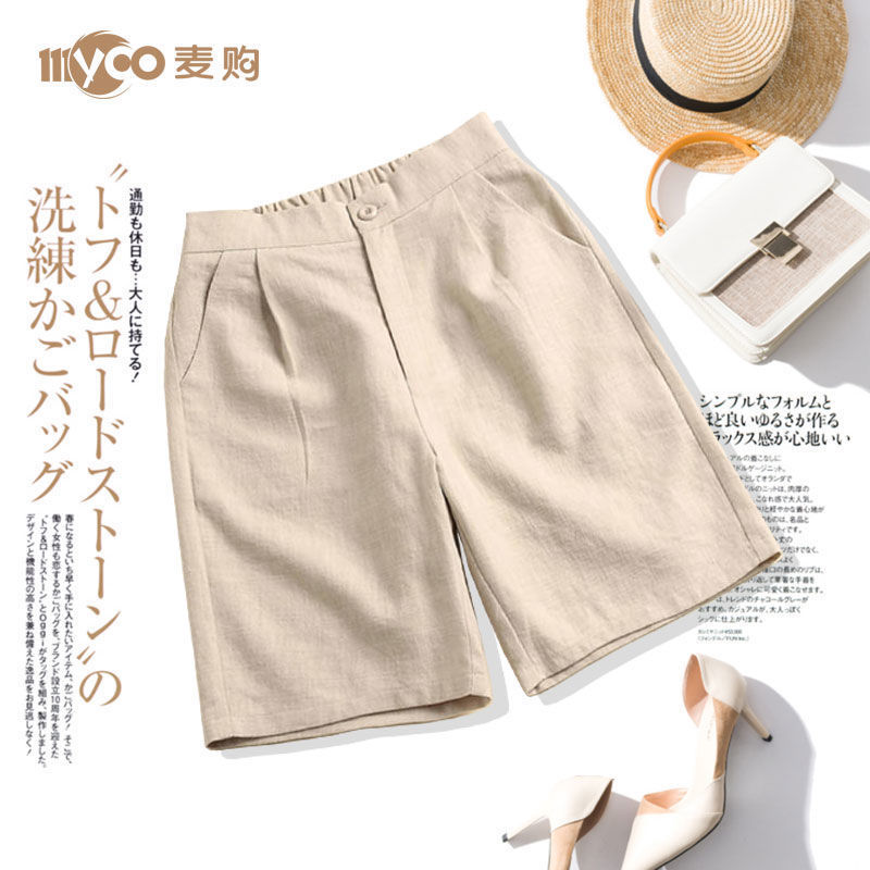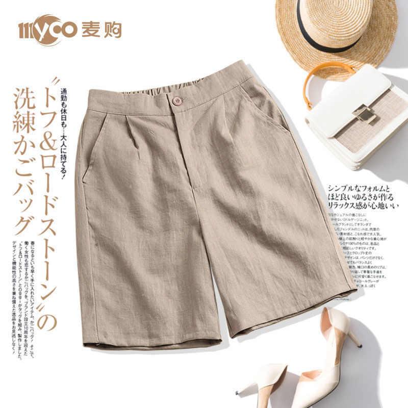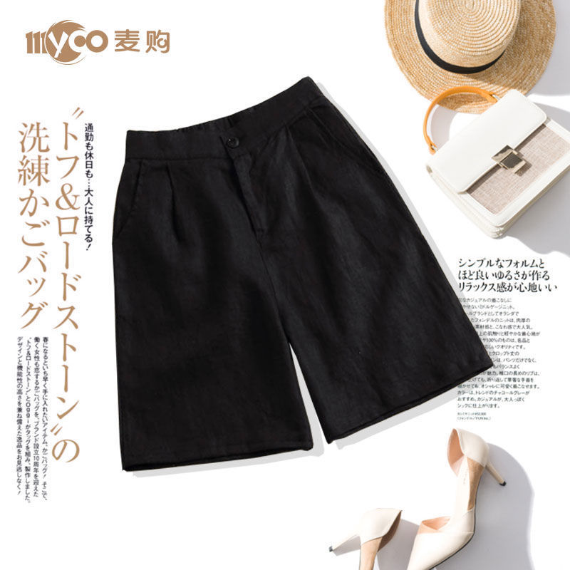 5分丈パンツ 綿麻 ハーフパンツ レディース ワイドパンツ 五分丈 ガウチョパンツ ボトムス 膝丈 ショート丈 後ウエストゴム カジュアルパンツ 体型カバー 無地 大きサイズ 代1化粧ポー