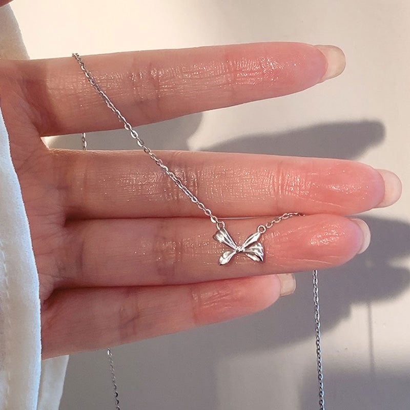 S純銀のリボンネックレス女性のの新型鎖骨鎖簡約な首鎖の小さい衆の設計感
